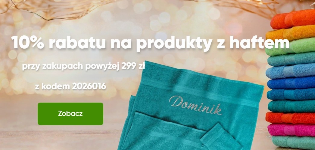 Podaruj bliskiej osobie lub sobie ręcznik frotte z haftem.Ten prezent z pewnością ucieszy każdego. Maksymalna liczba znaków do wyhaftowania to 12. Liczba wyhaftowanych znaków proporcjonalnie wpływa na wysokość haftu (więcej znaków = mniejsza czcionka). Rozmiar wybranego ręcznika również wpływa na wynikową wysokość czcionki. W przypadku korzystania z kombinacji liter z dolnymi kreskami (g, j, p, q, y) i górnymi kreskami (b, d, f, h, k, l, t) konieczne jest uwzględnienie optycznej zmiany wysokości czcionki. W tym przypadku całkowita wysokość haftu jest mierzona od najwyższego punktu liter w górnej linii do najniższego punktu liter w dolnej linii. Sprawia to, że wynikowa czcionka jest niższa niż w przypadku użycia liter tylko z górnymi pociągnięciami. Napis zostanie umieszczony na środku górnej części, gdzie znajduje się pętla do zawieszenia. Dzięki temu nazwa będzie łatwo widoczna na wiszącym ręczniku.
