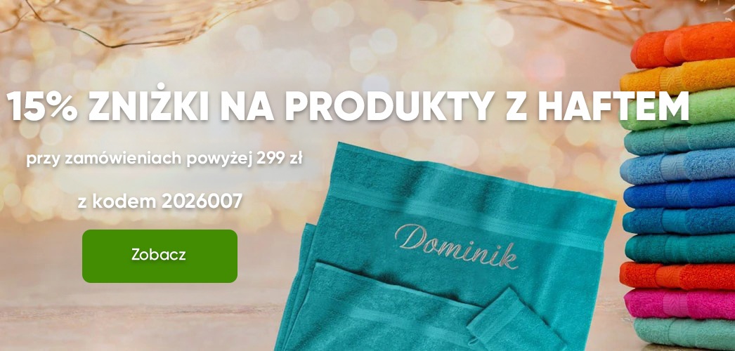 Podaruj bliskiej osobie lub sobie ręcznik frotte z haftem.Ten prezent z pewnością ucieszy każdego. Maksymalna liczba znaków do wyhaftowania to 12. Liczba wyhaftowanych znaków proporcjonalnie wpływa na wysokość haftu (więcej znaków = mniejsza czcionka). Rozmiar wybranego ręcznika również wpływa na wynikową wysokość czcionki. W przypadku korzystania z kombinacji liter z dolnymi kreskami (g, j, p, q, y) i górnymi kreskami (b, d, f, h, k, l, t) konieczne jest uwzględnienie optycznej zmiany wysokości czcionki. W tym przypadku całkowita wysokość haftu jest mierzona od najwyższego punktu liter w górnej linii do najniższego punktu liter w dolnej linii. Sprawia to, że wynikowa czcionka jest niższa niż w przypadku użycia liter tylko z górnymi pociągnięciami. Napis zostanie umieszczony na środku górnej części, gdzie znajduje się pętla do zawieszenia. Dzięki temu nazwa będzie łatwo widoczna na wiszącym ręczniku. Zalecenie: odwrotna strona haftu jest pokryta włókniną, którą zalecamy usunąć po pierwszym praniu. Można ją usunąć po prostu odrywając lub delikatnie odcinając nożyczkami. Górna strona haftu jest pokryta cienką warstwą ochronną, która jest łatwo rozpuszczalna w wodzie. Uwaga: ten produkt nie jest objęty opcją odstąpienia od umowy ze względu na jego personalizację. Więcej szczegółowych informacji można znaleźć tutaj . Kolor nici do haftu do wyboru: szary, antracytowy, różowy, niebieski, biały. Wybór rodzaju haftu: nazwa według życzenia - wysokość czcionki do 5 cm, maksymalna ilość znaków 12 wzór mix wysokość 4 cm Szablony kotów, psów i koni: wysokość 5 - 8 cm (wysokość należy dostosować do wielkości powierzchni tekstylnej) - nić tylko w kolorze antracytowym Informacje o produkcie: Ręcznik frotte o miękkiej i przyjemnej jakości jest wyjątkowo chłonny. Jego kolory są trwałe i odporne na pranie. Ozdobiony jest tkaną obwódką. Materiał: 100% bawełna bouclé frotte. Gramatura: 420 g/m2. Ręcznik posiada certyfikat Öko - Tex Standard 100, który gwarantuje użycie bezpiecznych dla zdrowia materiałów. Zalecane pranie w temperaturze do 60 °C (pranie ekologiczne w 40 °C).