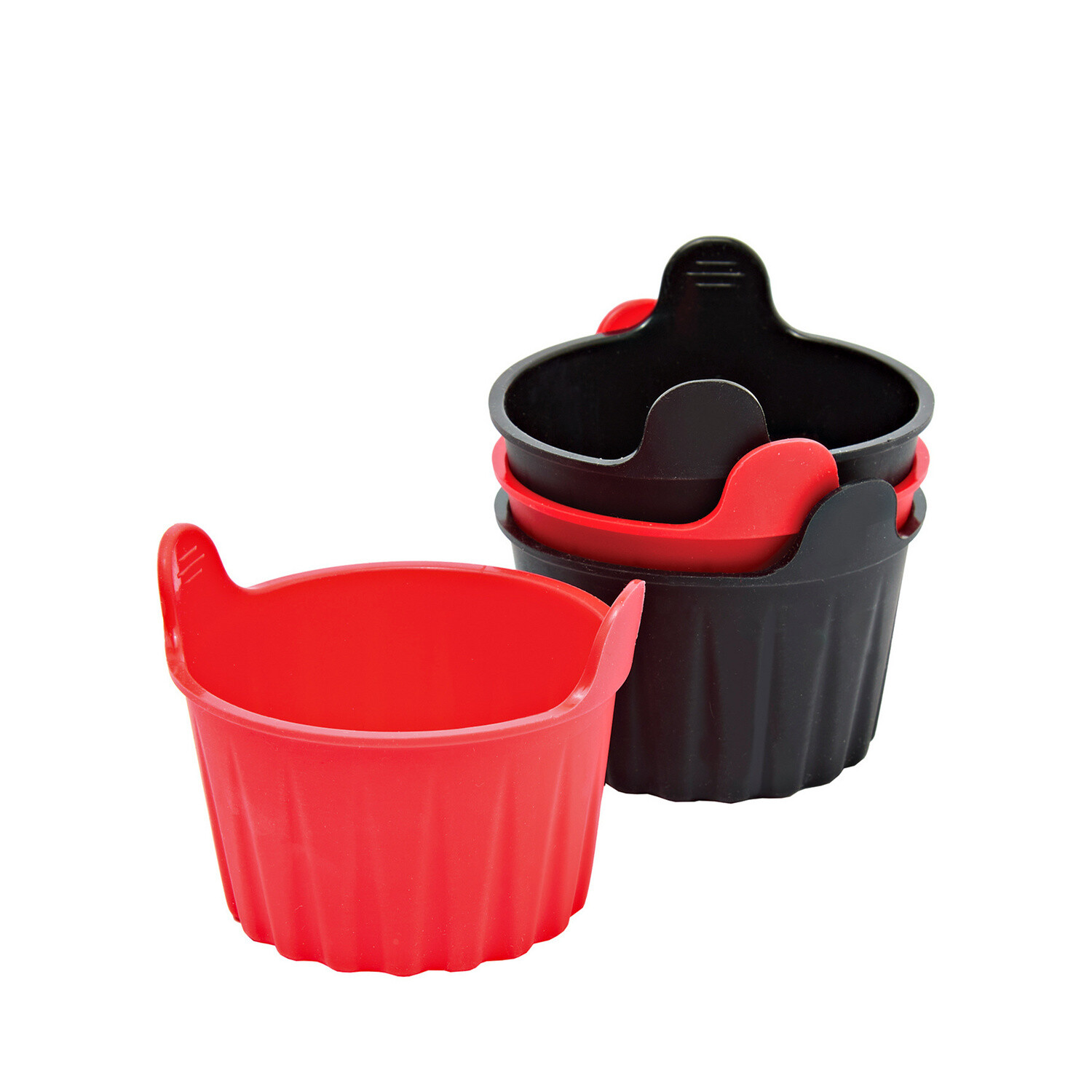 Odporne na temperaturę do 230°C. Wysokość 5 cm, średnica 8 cm. 2 x czerwone, 2 x czarne.