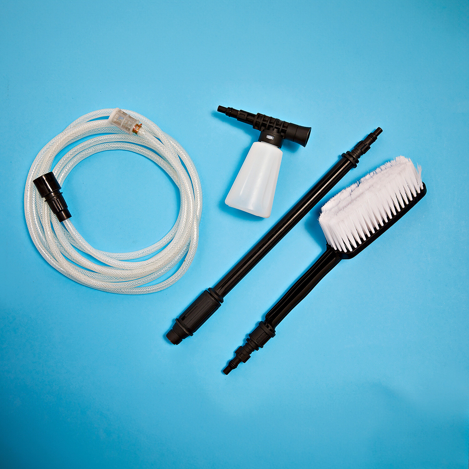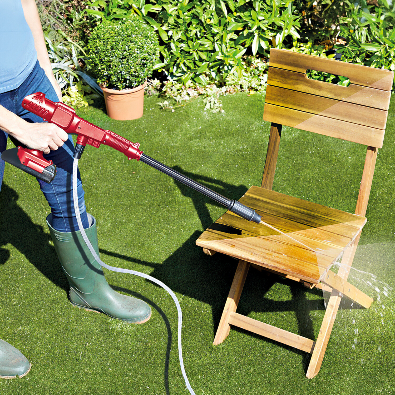 Wydajna, wszechstronna i po naładowaniu działa przez 20 minut bez przerwy! Ta niesamowita myjka wysokociśnieniowa może być używana do każdego zadania: np. do usuwania mchu i brudu z patio lub czyszczenia felg aluminiowych. Można jej również używać do czyszczenia okien na piętrze, markiz, tarasów, mebli ogrodowych, rowerów i wielu innych. Wygodne urządzenie ręczne waży mniej niż 2 kg, jest łatwe w użyciu i pasuje do wszystkich standardowych węży ogrodowych. Dostarczane w komplecie z długą dyszą, odłączanym dozownikiem detergentu, wytrzymałą obrotową głowicą ze szczotką i wężem przedłużającym o długości 5 m. W zestawie akumulator litowo-jonowy 20 V i ładowarka.