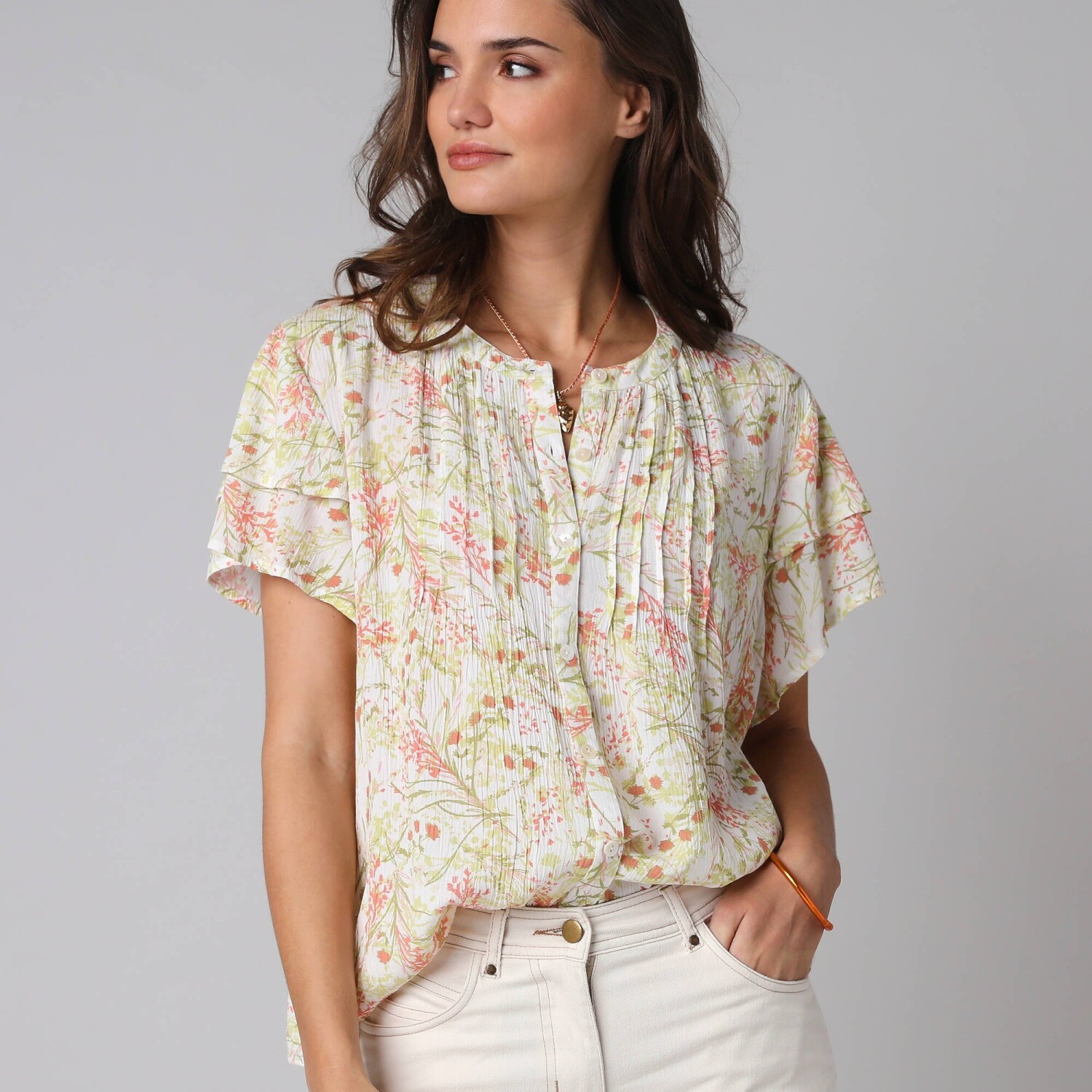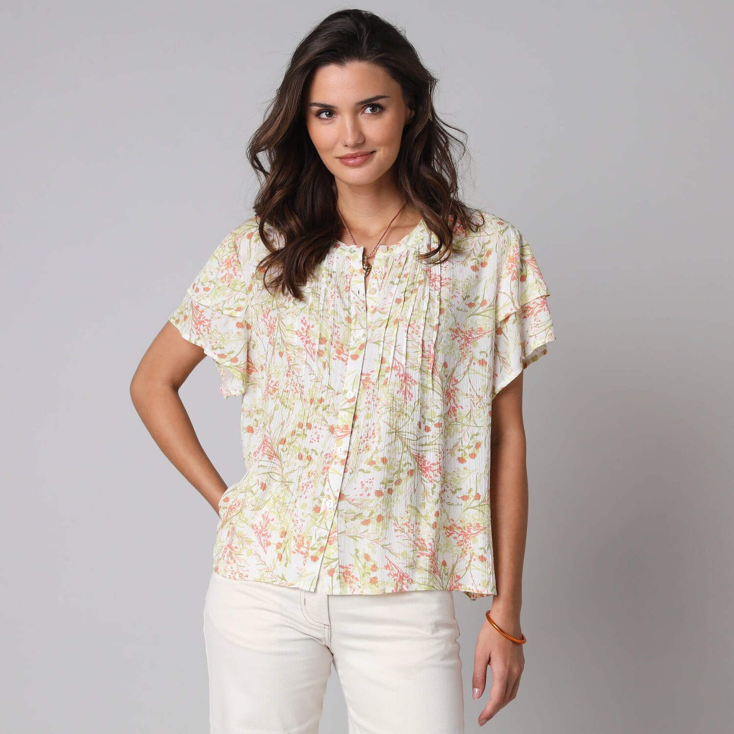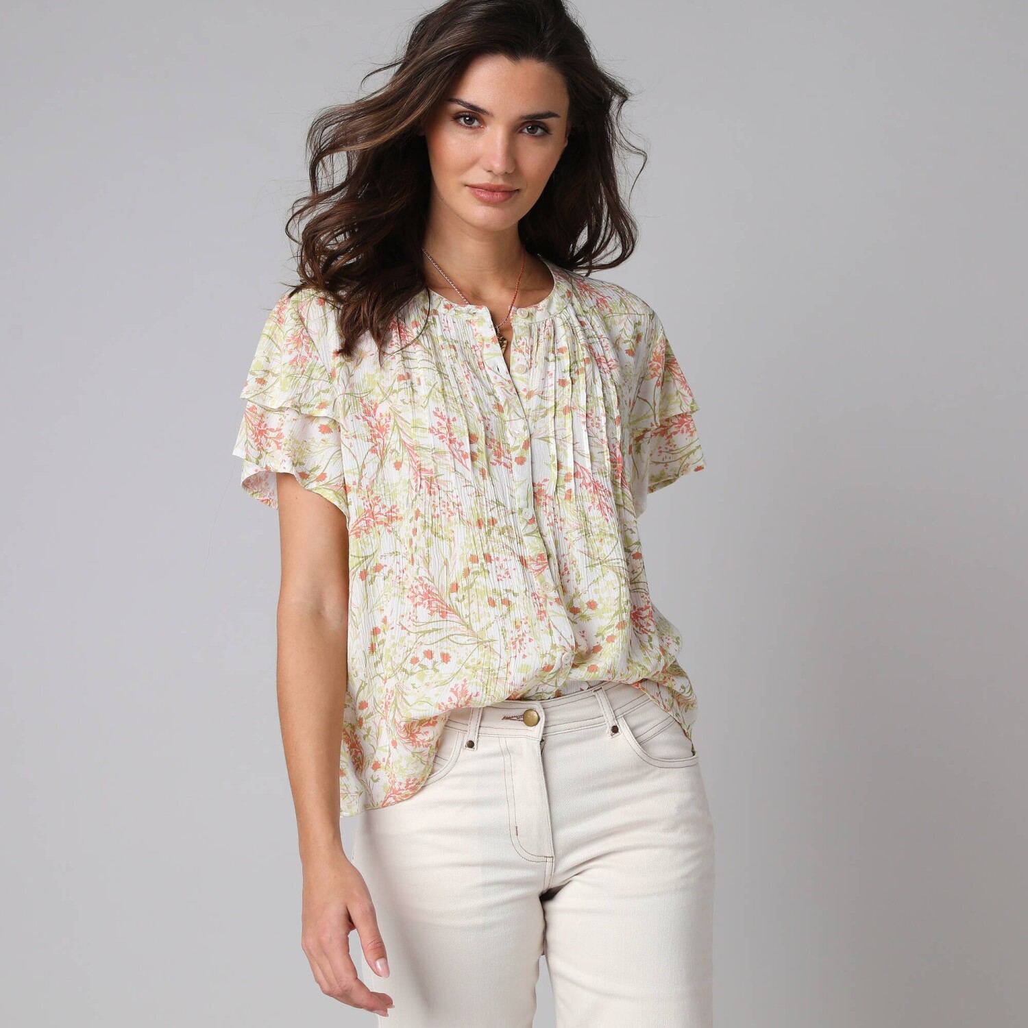 Jednokolorowa bluzka wykonana z koronkowej dzianiny