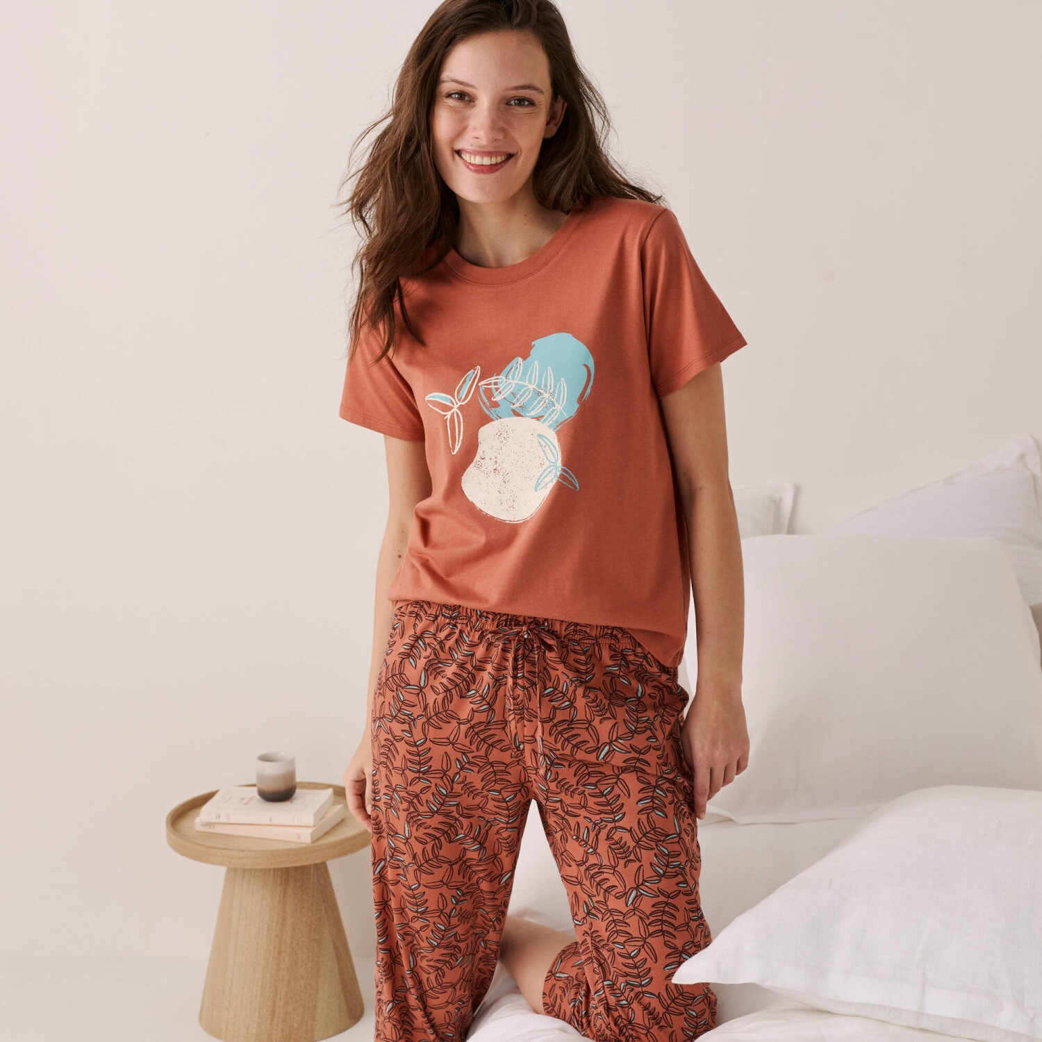 Bluzka piżamowa z krótkim rękawem i pięknym nadrukiem w centralnej części