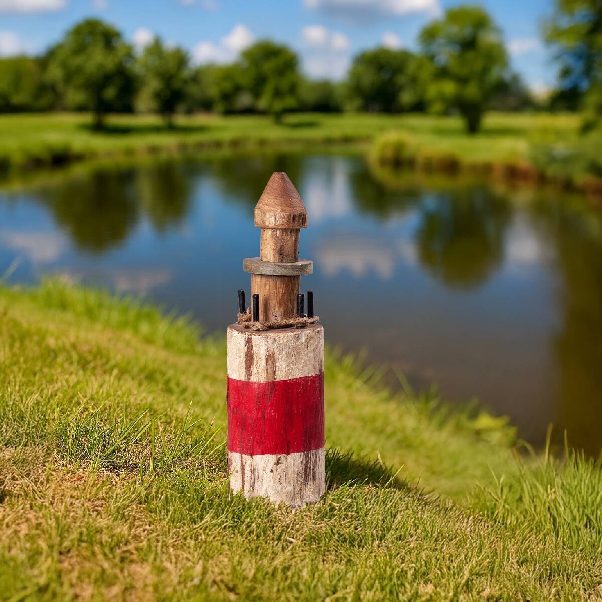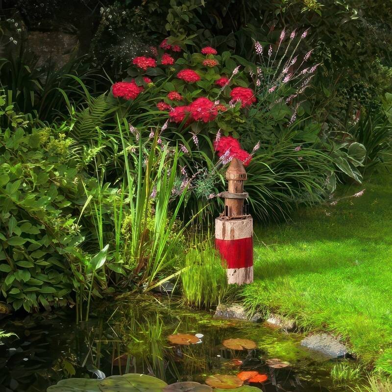 Wprowadź odrobinę morskiego klimatu do swojego domu lub ogrodu dzięki tej wyjątkowej drewnianej latarni morskiej. Wykonana z litego drewna, surowo opracowanego, aby podkreślić jego naturalną strukturę i rustykalny charakter. Każdy egzemplarz jest ręcznie malowany, dzięki czemu całkowicie niepowtarzalny. Jego naturalny wygląd doskonale komponuje się z roślinami, na tarasie lub przy oczku wodnym. Materiał: drewno. Wysokość: 32 cm.