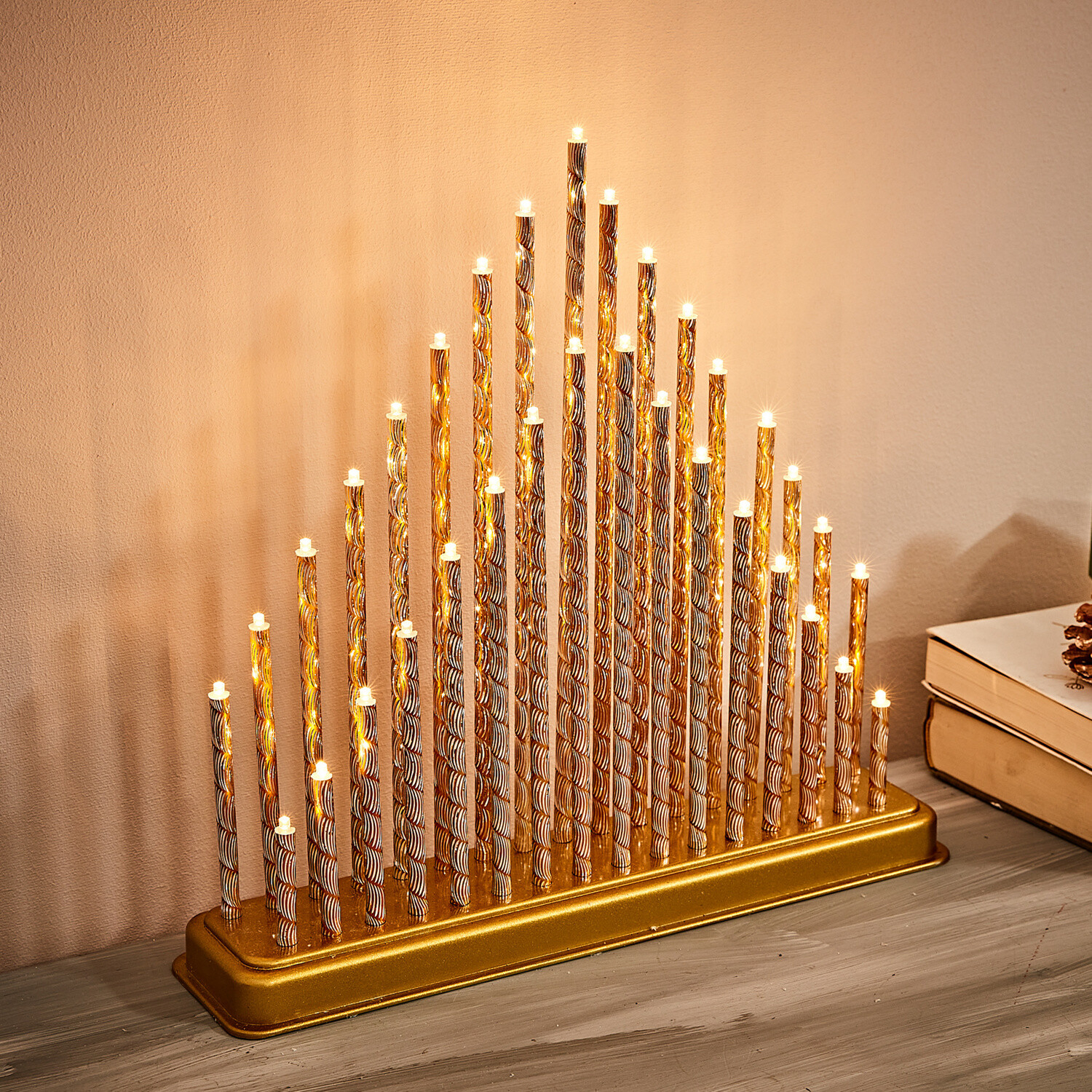 Piękny stary zwyczaj, który dawniej wskazywał zagubionym ludziom drogę: łuk świetlny w oknie w nowej odsłonie z 33 błyszczącymi diodami LED w 2 rzędach. Ciepły i magiczny blask! 33 diody LED. 33 błyszczące kolumny w 2 rzędach. Efekt 3D. Bez kabli, bez kosztów energii elektrycznej. Zasilanie bateryjne. Zamów takie: 8 baterii AA, 1,5 V 416260.