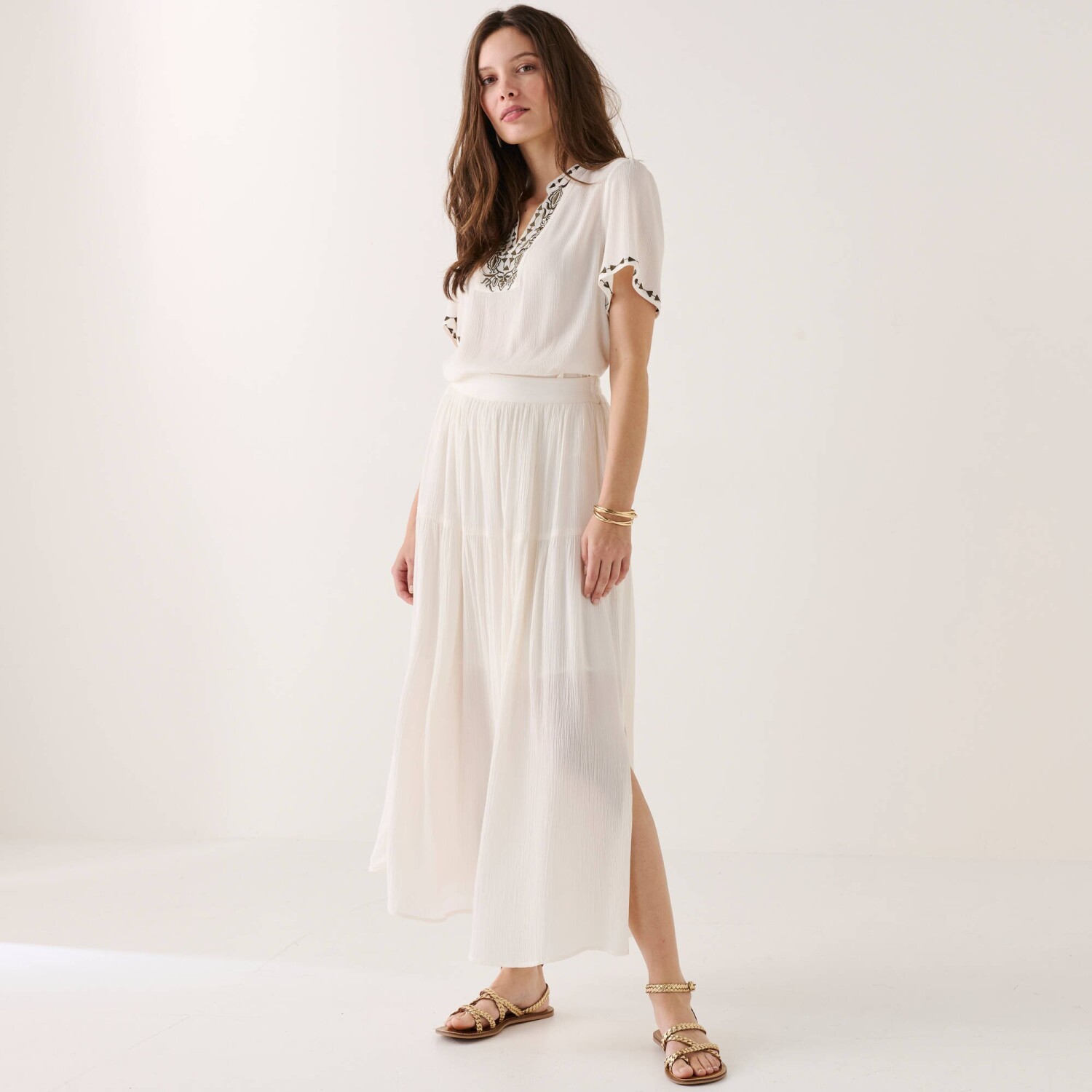 Spódnica w jednolitym kolorze z kieszeniami i guzikami stanie się letnim niezbędnikiem. Długość za kolana. Profilowana talia ze szlufkami. 2 kieszenie klinowe z falbankami i guzikami. 2 kieszenie naszywane z tyłu. 2 zaszewki z tyłu. Certyfikat „Made in Green” OEKO-TEX®. Oprócz weryfikacji kilkuset substancji chemicznych (STANDARD 100), które przyczyniają się do wysokiego poziomu bezpieczeństwa, etykieta ta gwarantuje przemyślane zasady produkcji i kontrolowane praktyki społeczne (certyfikat STeP). Można prać w pralce.