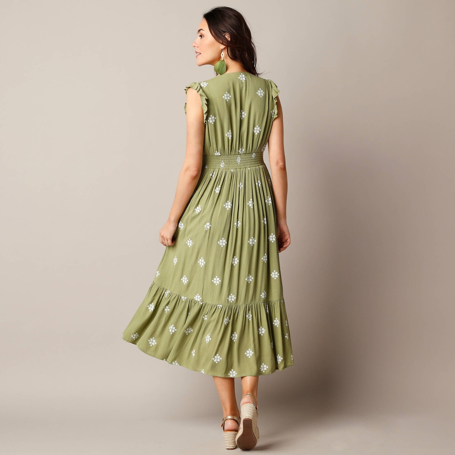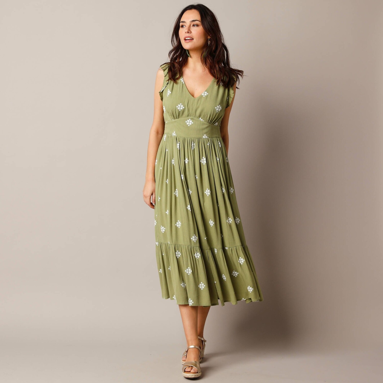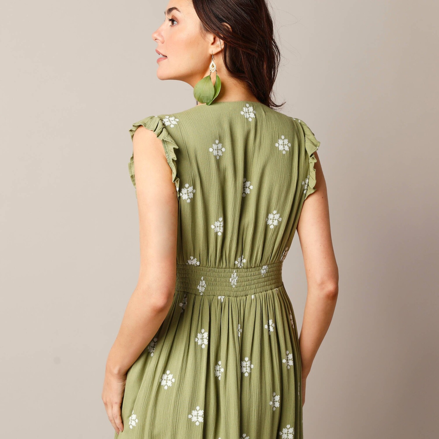 Postaw na styl w tej koszulowej sukience z nadrukiem zwierzęcym, której nie sposób nie zauważyć. Zaprojektowana dla osób o wzroście do 160 cm. Kołnierzyk koszulowy. Zapięcie na guziki z przodu. Szlufki na pasek ze sznurkiem. Ramiona w stylu żaby. Długie rękawy z elastycznymi mankietami. Talia w stylu żaby. Podszewka z regulowanymi ramiączkami. Falbanka u dołu. Można prać w pralce.