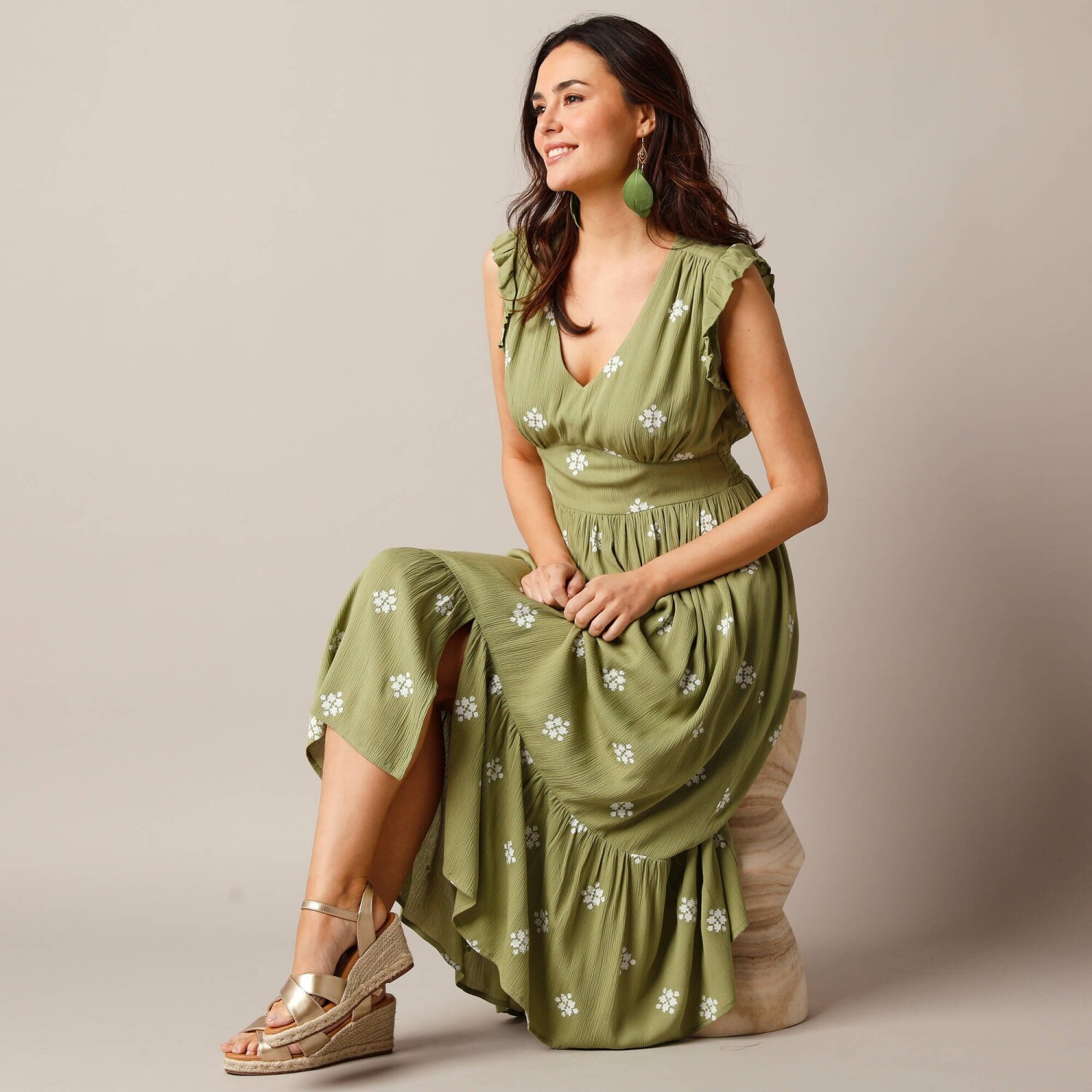 Długa sukienka ze zwierzęcym nadrukiem, dla drobniejszych figur
