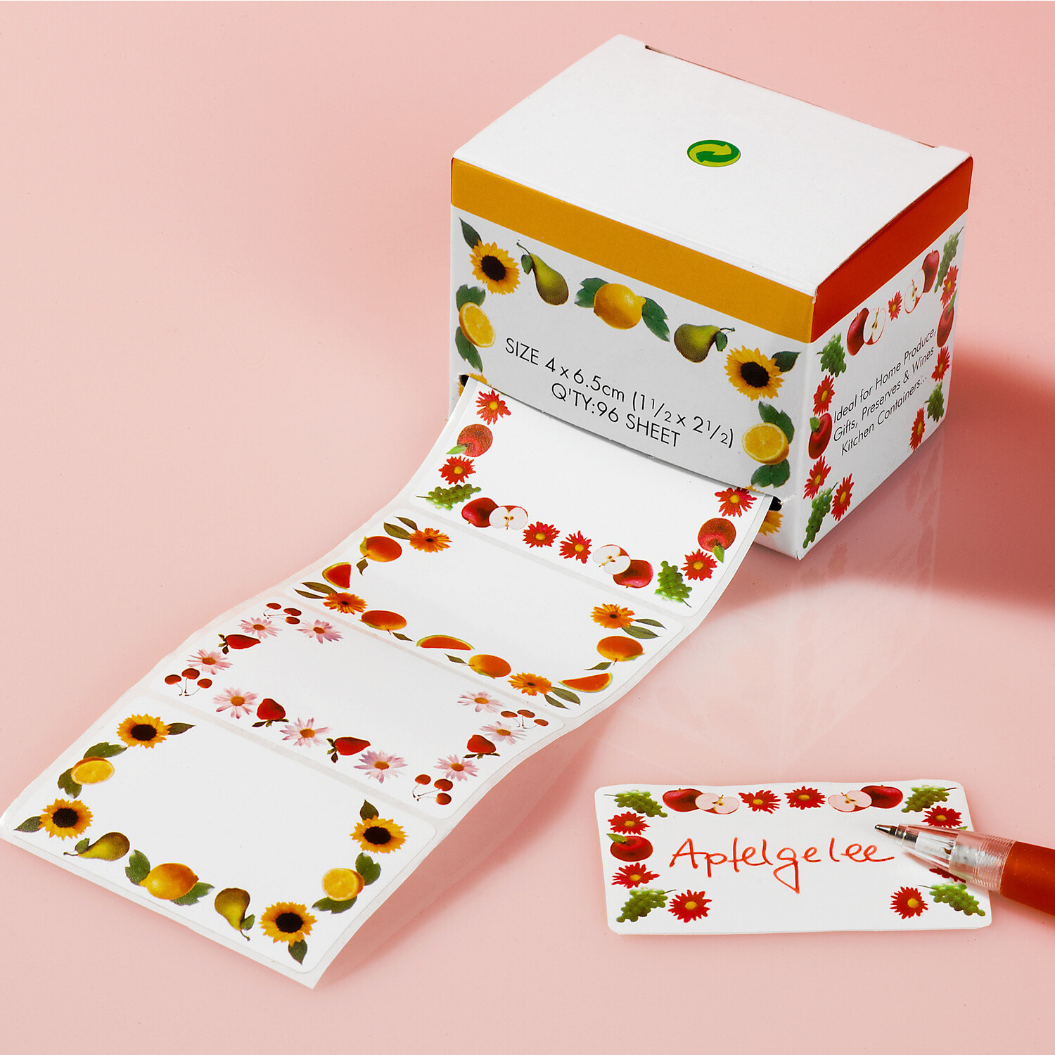 Etykiety do opisywania domowych przetworów. Podajnik z 4 motywami.