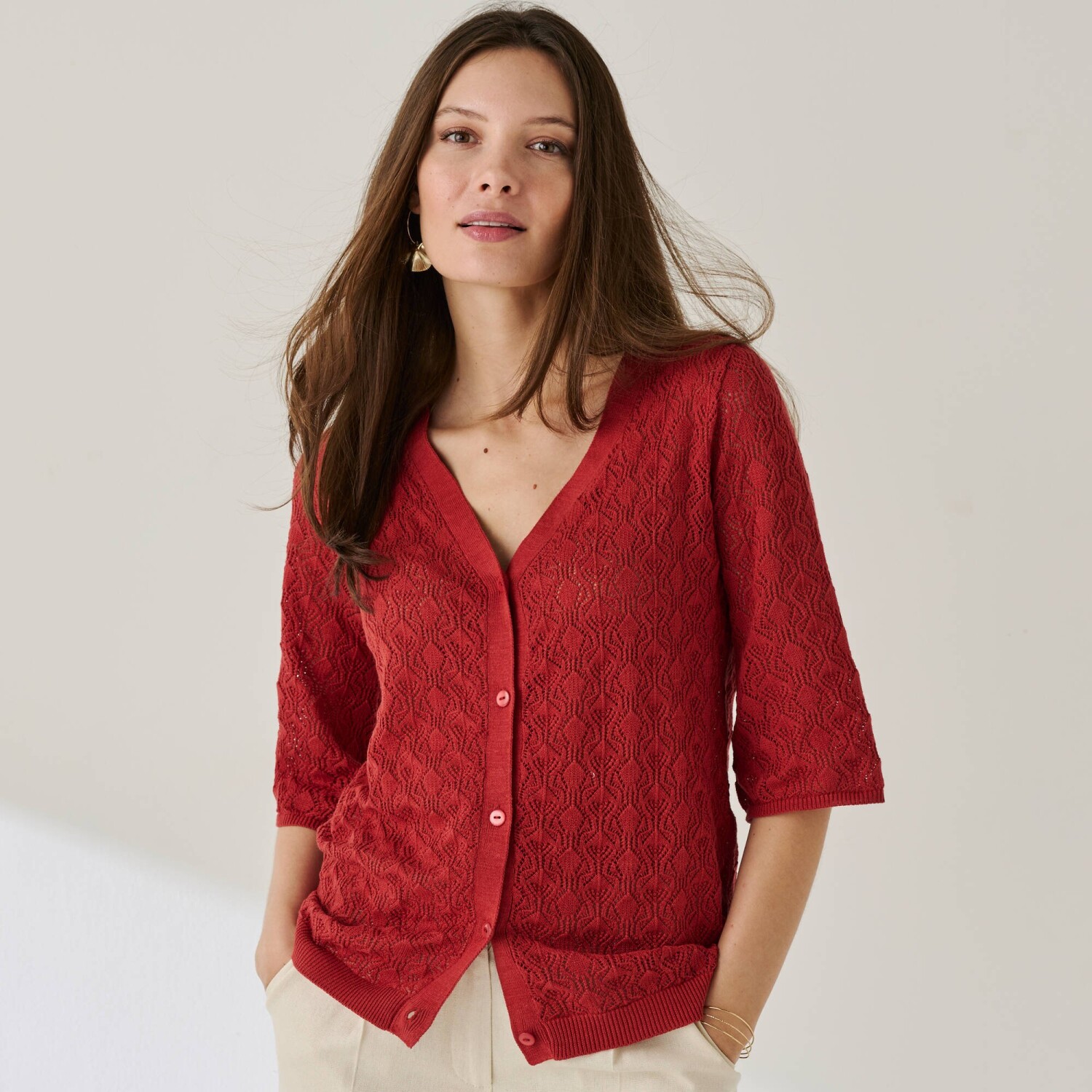 Możesz z łatwością dopasować ten kardigan do swoich ulubionych jeansów, spódnicy lub koszuli. Okrągły dekolt. Długie rękawy. Guziki z efektem rogu. 2 kieszenie naszywane z przodu. Perłowy wzór. Można prać w pralce.