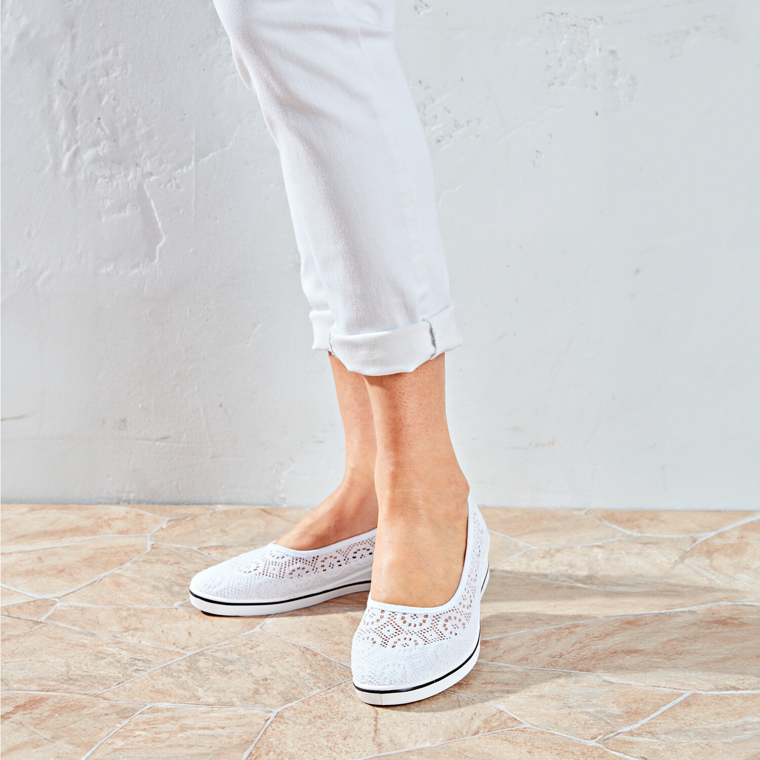 Inspirowane stylem marynistycznym, welurowe baleriny Isotoner wyróżniają się kolorowymi paskami. Elastyczne, lekkie, wygodne i antypoślizgowe, nie mają sobie nic do zarzucenia. Wykonane z miękkiego weluru. Szeroka kokarda na cholewce zapewnia kobiecy wygląd. Wkładka z pamięcią kształtu dla wsparcia łuku. Gumowa, antypoślizgowa podeszwa zewnętrzna z technologią EVERYWEAR™ jest elastyczna, lekka i amortyzuje wstrząsy podczas chodzenia.
