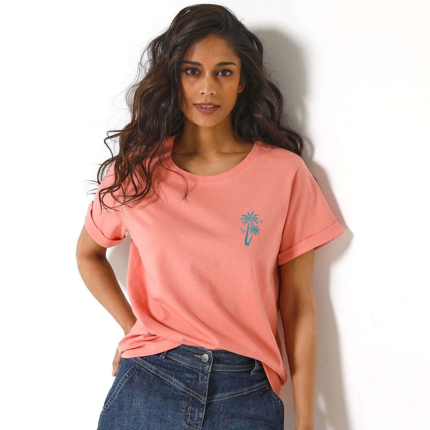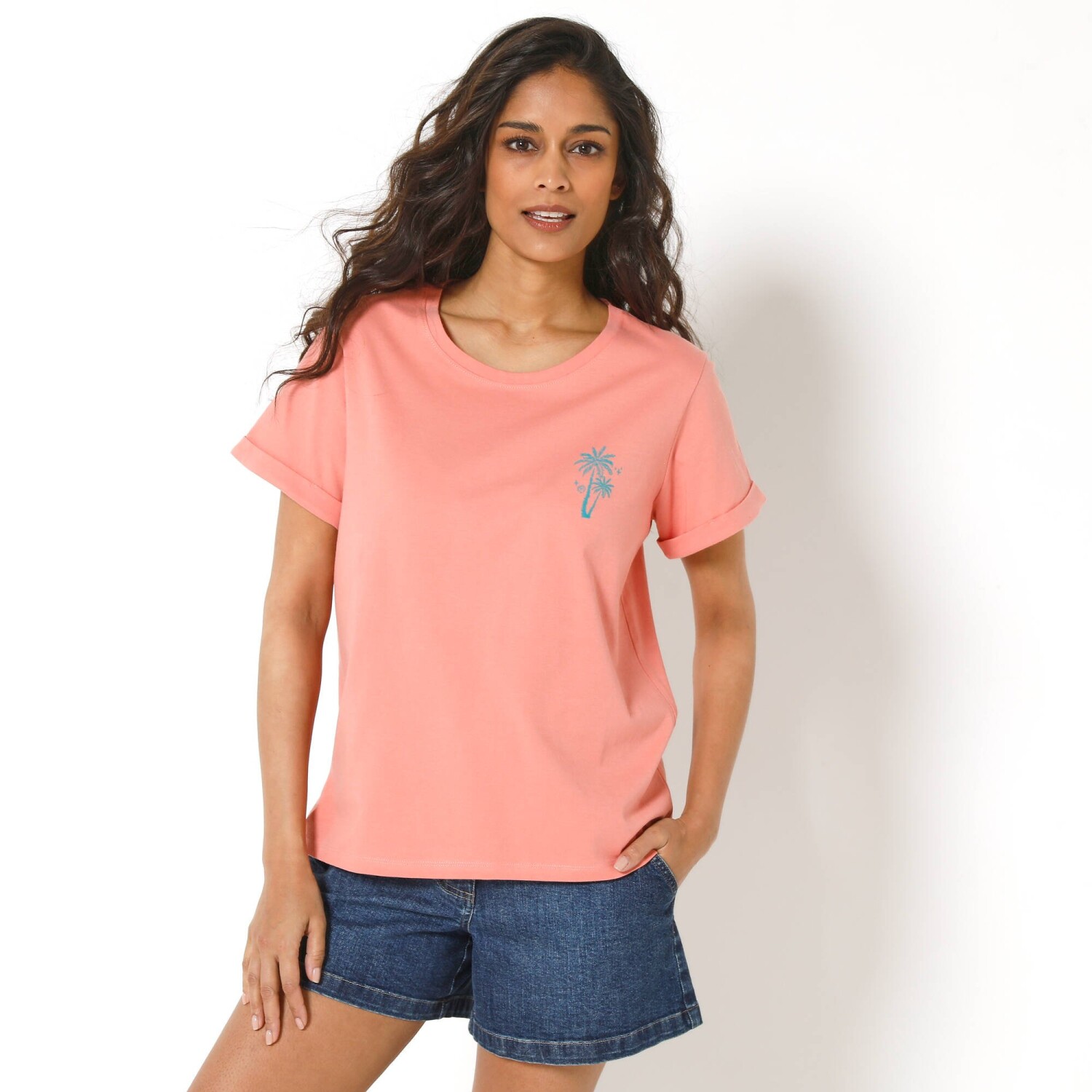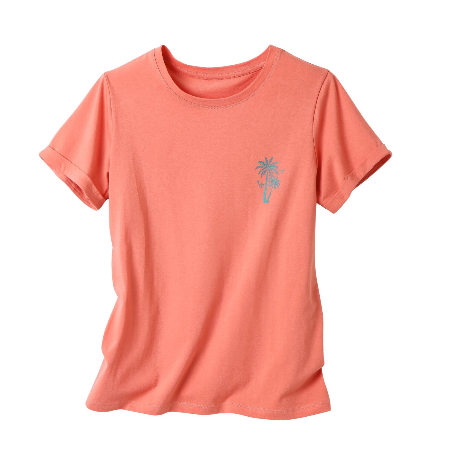Luźny krój, świeży nadruk i łatwy w pielęgnacji letni dżersej: ta modna koszulka została zaprojektowana specjalnie z myślą o drobnej sylwetce. Luźny krój. Łatwy w pielęgnacji dżersej. Okrągły, lekko luźny dekolt. Opuszczone ramiona. Podwijane rękawy. Centralny nadruk z przodu. Prosty dół. Oeko-Tex standard 100 (nr CQ 1216 / 3 IFTH). Ten znak identyfikuje produkty tekstylne, które zostały poddane testom laboratoryjnym pod kątem szerokiej gamy szkodliwych substancji, a produkt jest bezpieczny poza obowiązującymi normami. Można prać w pralce.