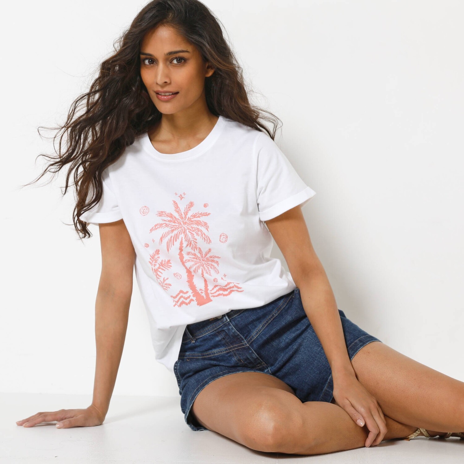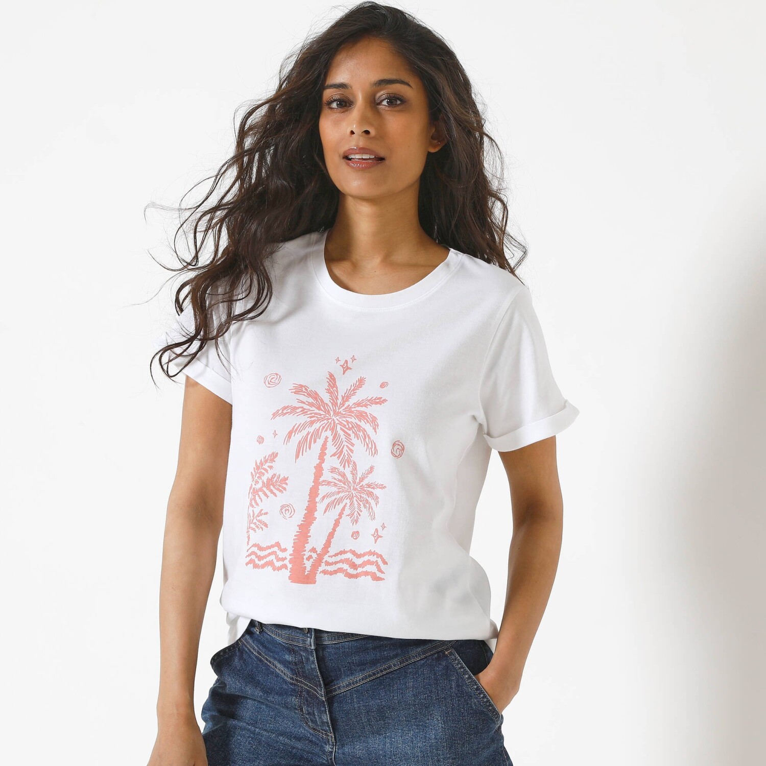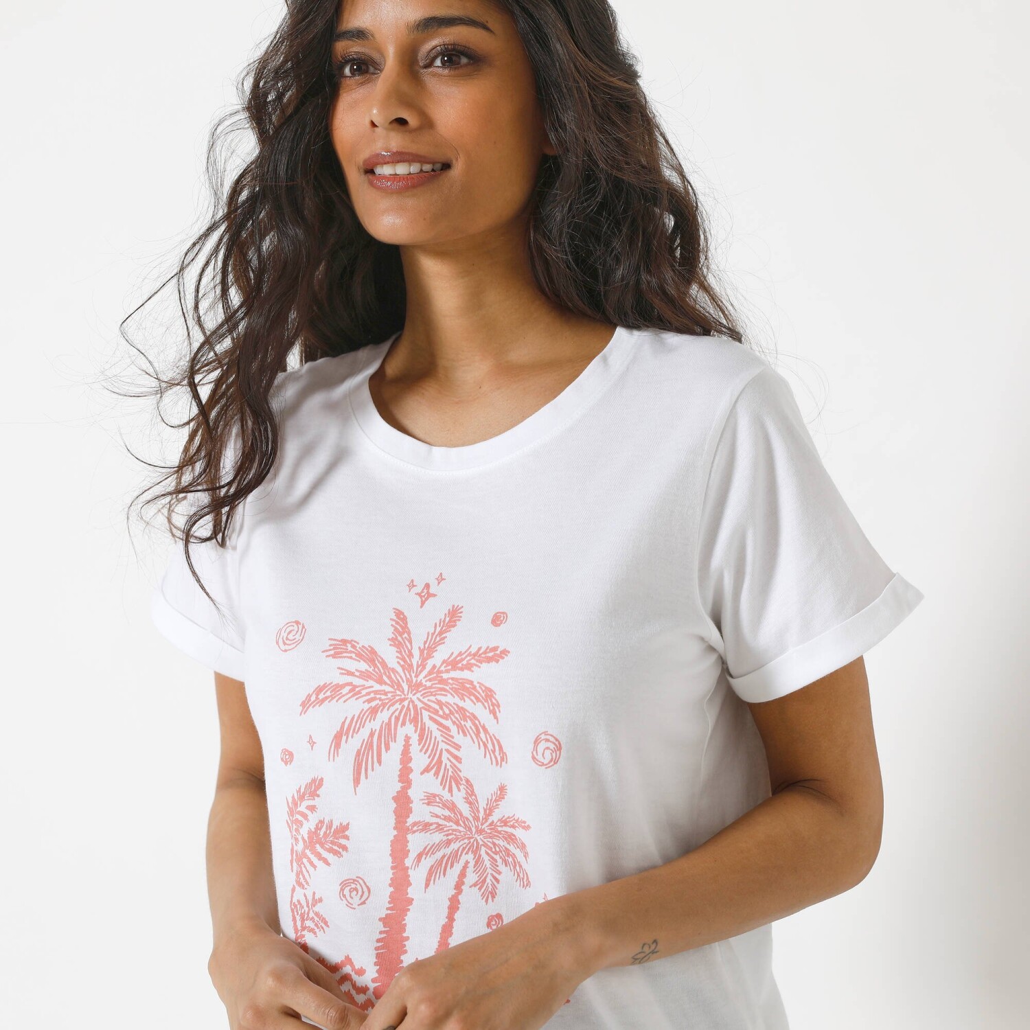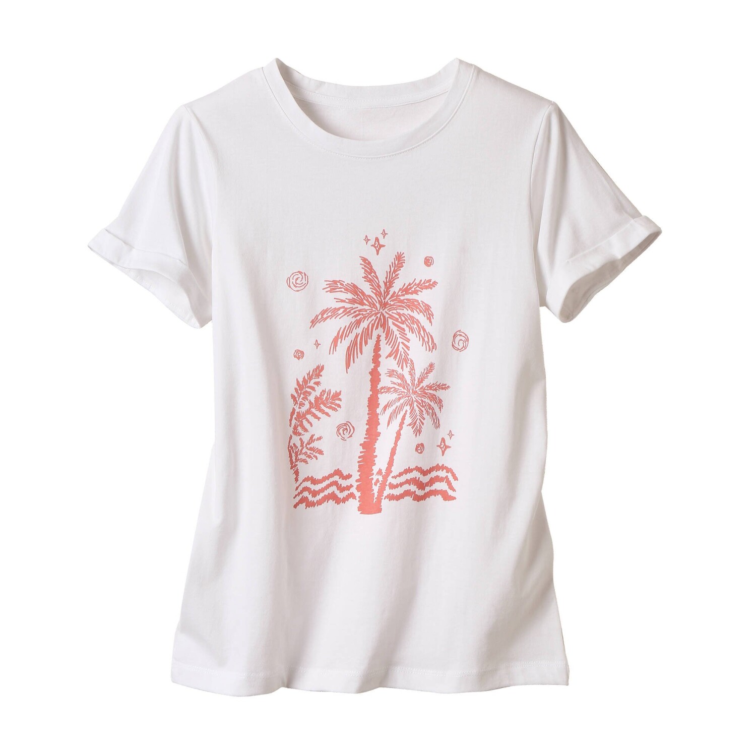 Co może być bardziej egzotycznego niż palmy nad morzem? Dlatego dodaliśmy piękny, letni nadruk do klasycznego T-shirtu z krótkim rękawem. Modny do jeansów, szerokich spodni i szortów. Nadruk palmy pośrodku z przodu. Okrągły dekolt. Krótkie rękawy z podwinięciem. Prosty dół. Standard 100 według Oeko-Tex (nr CQ 1216 / 3 IFTH). Ten znak identyfikuje produkty tekstylne poddane testom laboratoryjnym na obecność szerokiej gamy substancji szkodliwych, a produkt jest bezpieczny w stopniu wykraczającym poza obowiązujące normy. Można prać w pralce.
