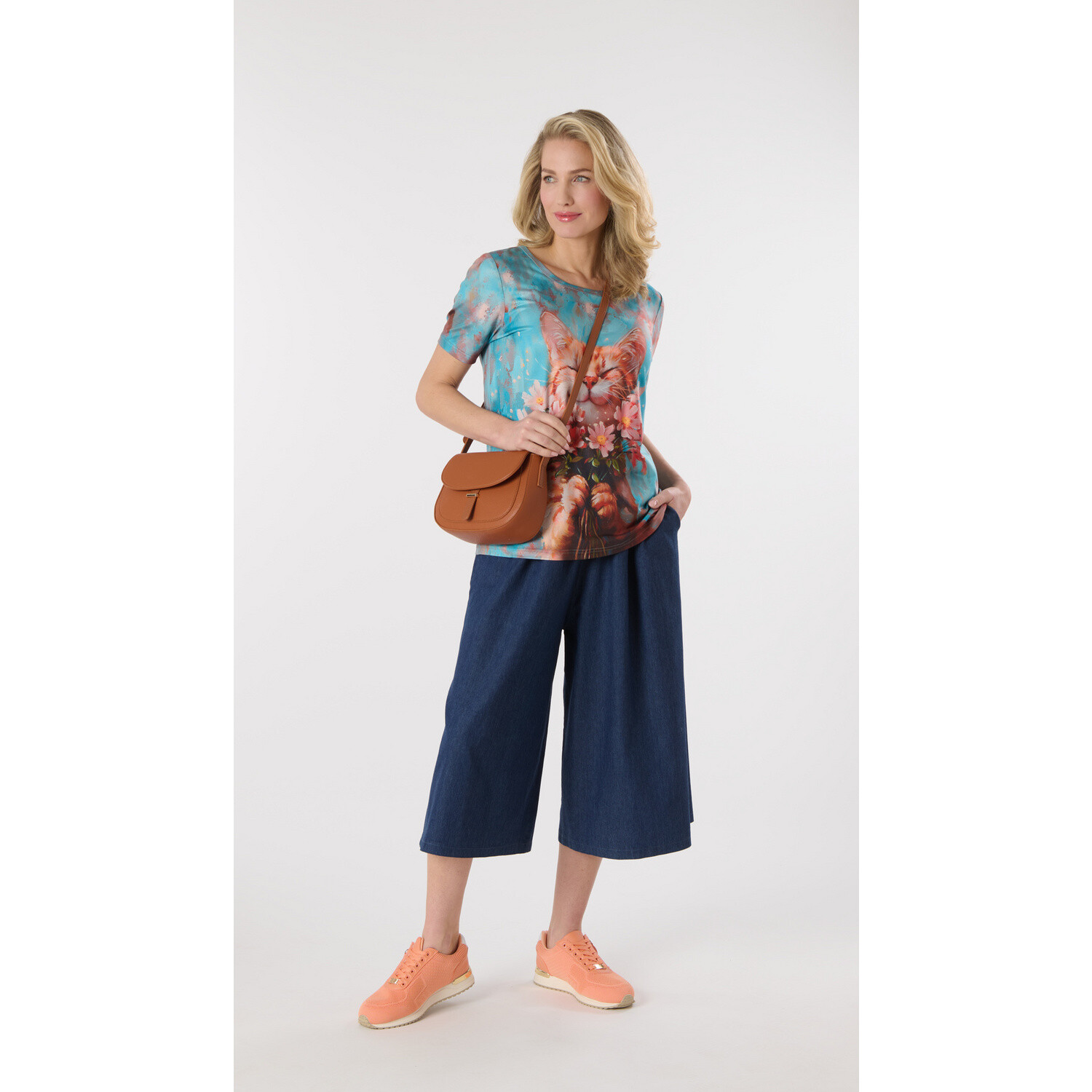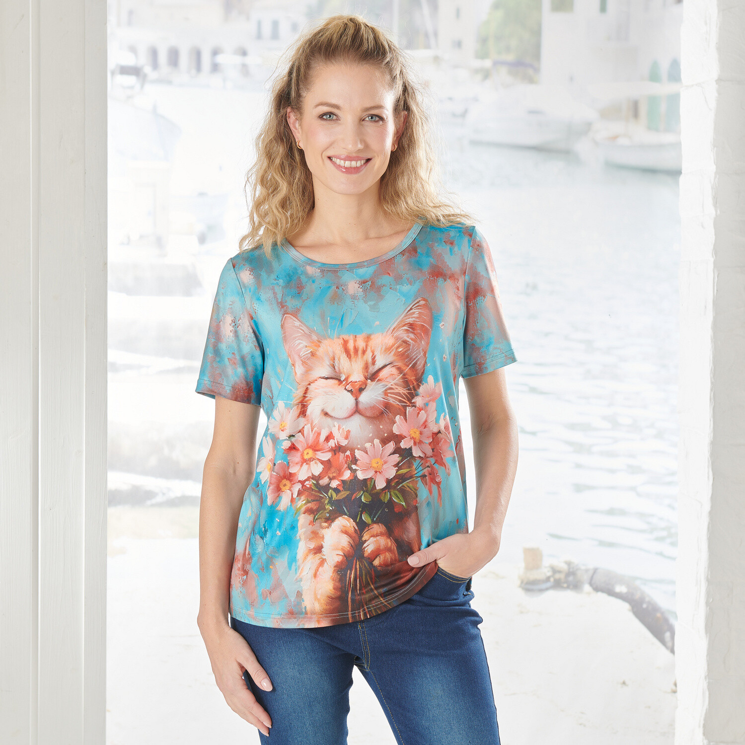 Dzianinowa koszula z rękawami do łokcia, dla drobniejszej sylwetki