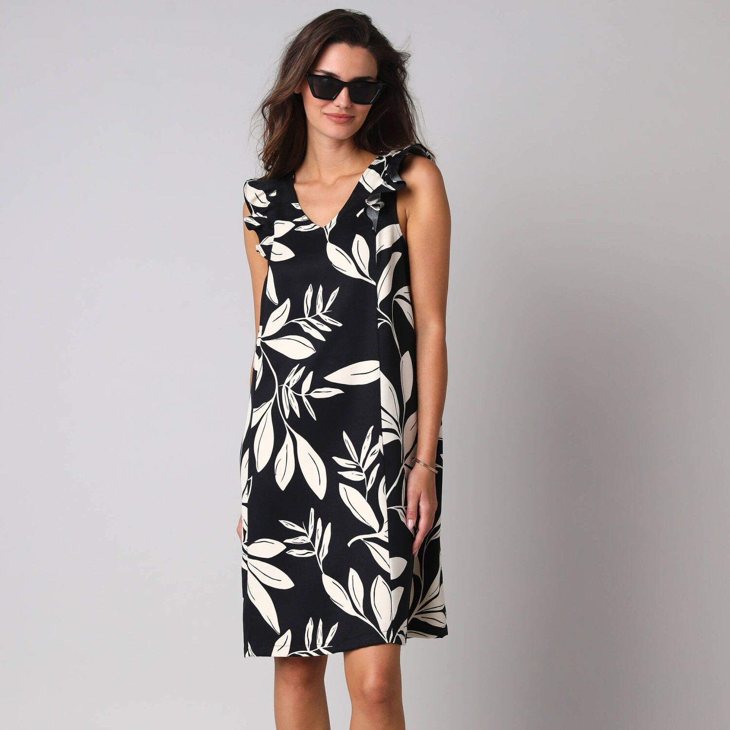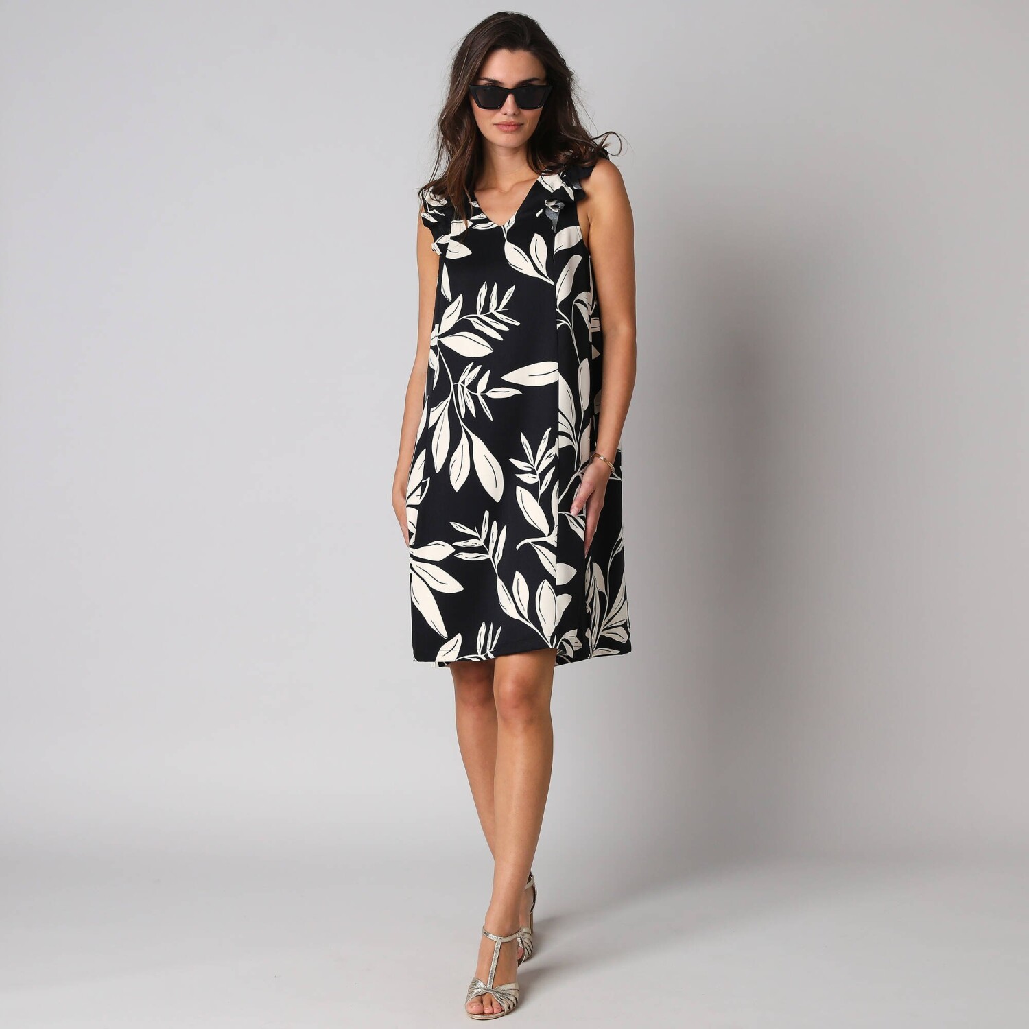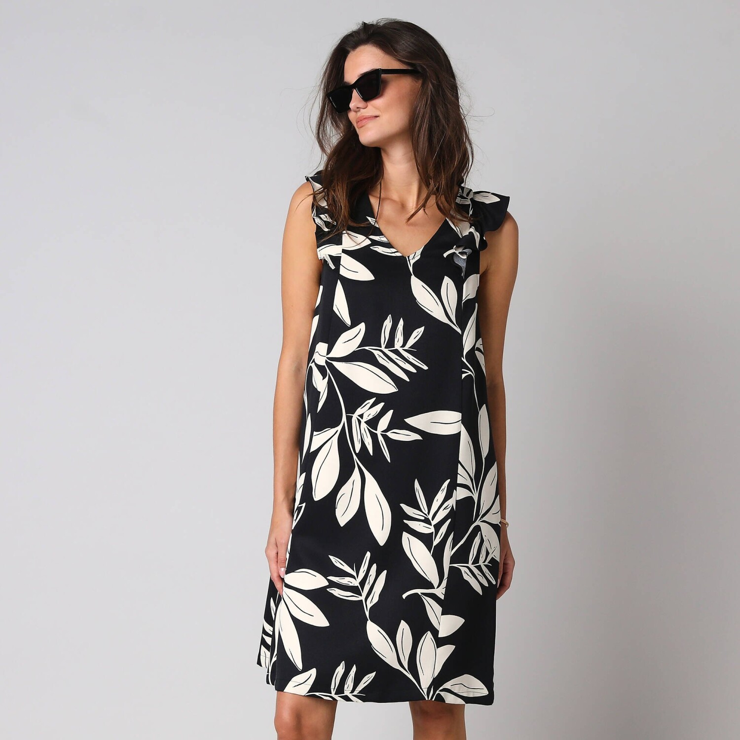 Gotowa na przygodę w tej sukience safari, która pasuje na różne okazje? Okrągły dekolt z krzyżem do noszenia otwartego lub zamkniętego. Krótkie rękawy z zakładką. Przednie guziki kokosowe + guzik wewnętrzny. Wycięcia na ramionach i w talii dla ładnej sylwetki. 2 przednie kieszenie zapinane na guziki. Dopasowany krój. Można prać w pralce.