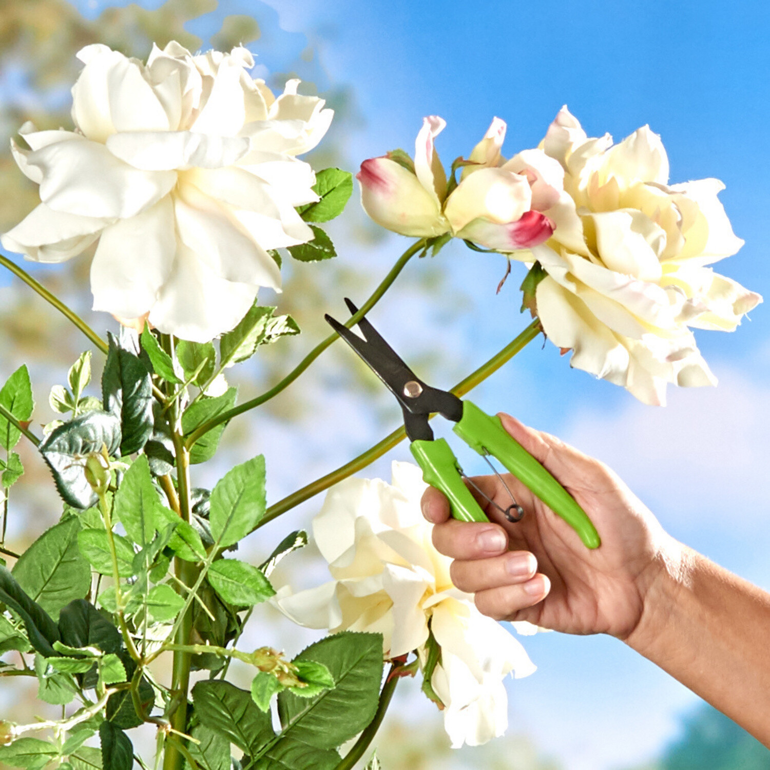 Niezbędne do ścinania zwiędłych kwiatów w ogrodzie, a także do cięcia bukietów do wazonu: wytrzymałe nożyce ogrodowe z ergonomicznym uchwytem i ostrzami pokrytymi powłoką antyadhezyjną.