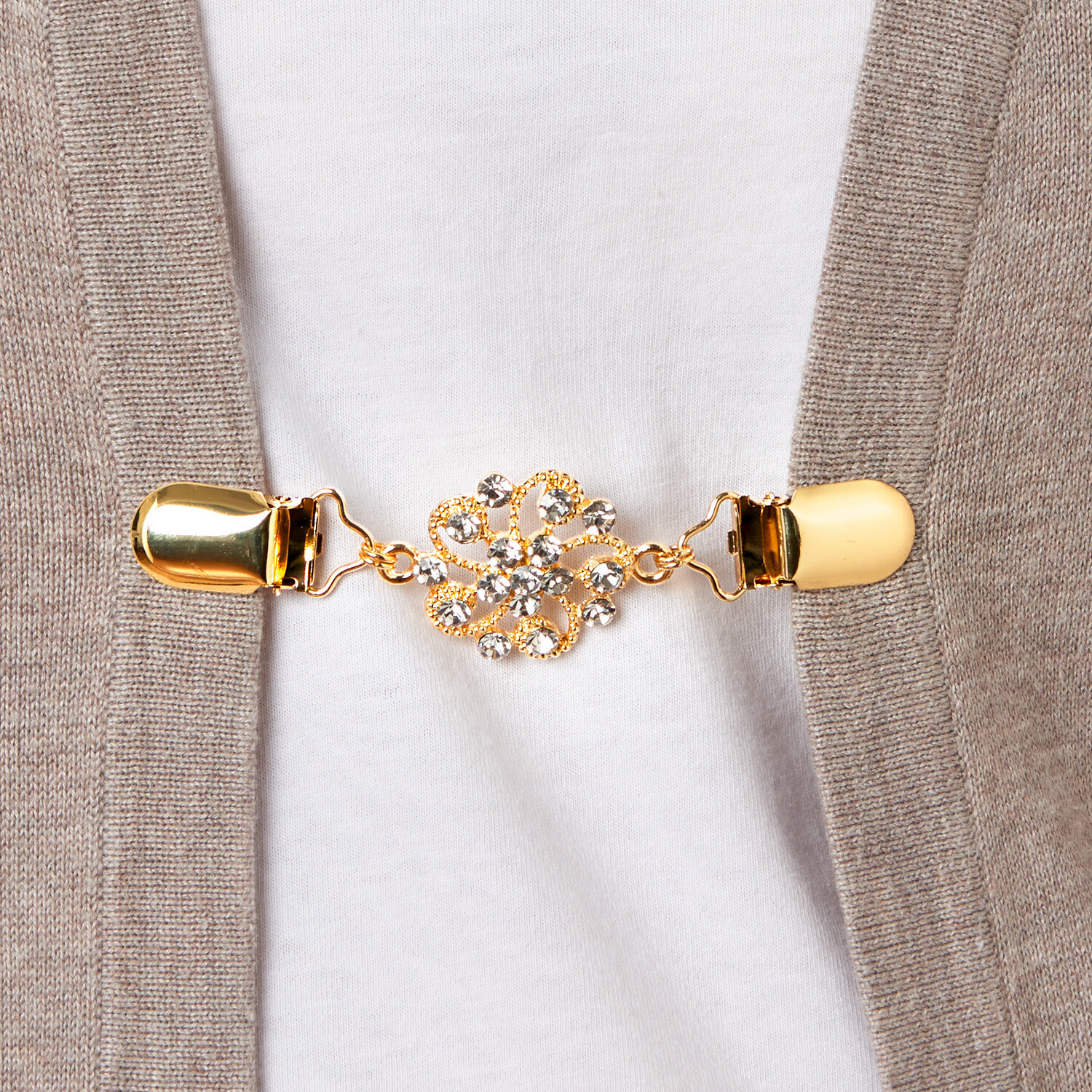 Te eleganckie spinki z perłami nie tylko zastąpią zapięcie marynarki lub kamizelki. Są bardzo ozdobne, można je nosić samodzielnie lub w połączeniu z innymi! Spinki z perłami w kolorze złotym i srebrnym. Broszka i spinka w jednym. Doskonale pasują do marynarek, kardiganów, bolerek i płaszczy. Można je nosić w zestawie lub pojedynczo. Zestaw 2 szt.