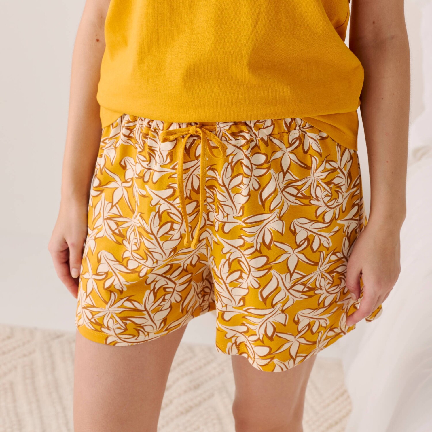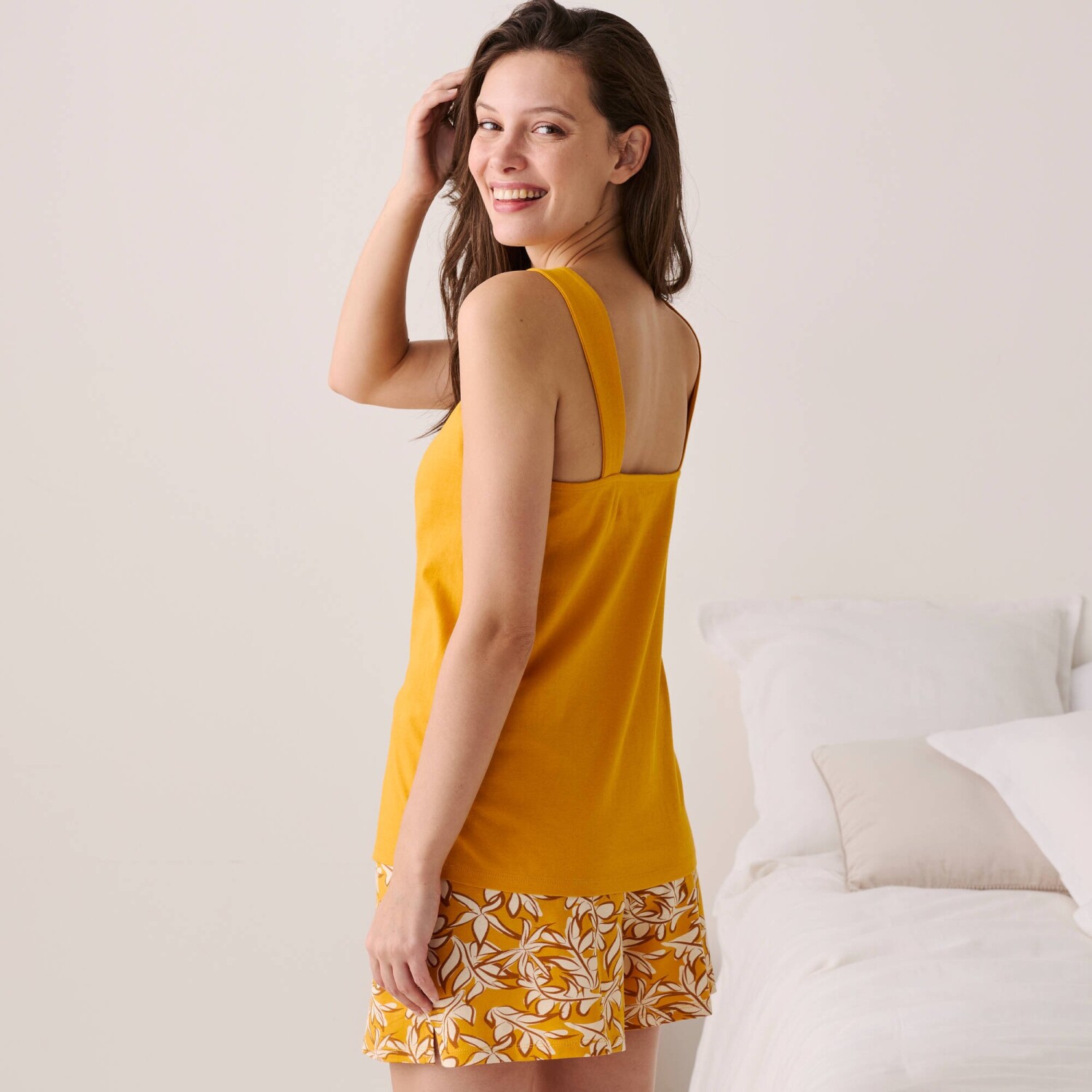 Bawełniany dżersej, nadruk w paski i motyw słońca: zakochaj się w tej pięknej piżamie ze spodniami 3/4. Koszulka z zaokrąglonym dekoltem w serek. Długie rękawy. Centralny nadruk z motywem słońca na piersi. Spodnie 3/4 z prostym dołem. Elastyczna talia. Dwukolorowy nadruk w paski. Standard 100 według Oeko-Tex (nr CQ 1216 / 3 IFTH). Ten znak identyfikuje produkty tekstylne poddane testom laboratoryjnym na obecność szerokiej gamy substancji szkodliwych, a produkt jest bezpieczny w stopniu wykraczającym poza obowiązujące normy. Można prać w pralce.