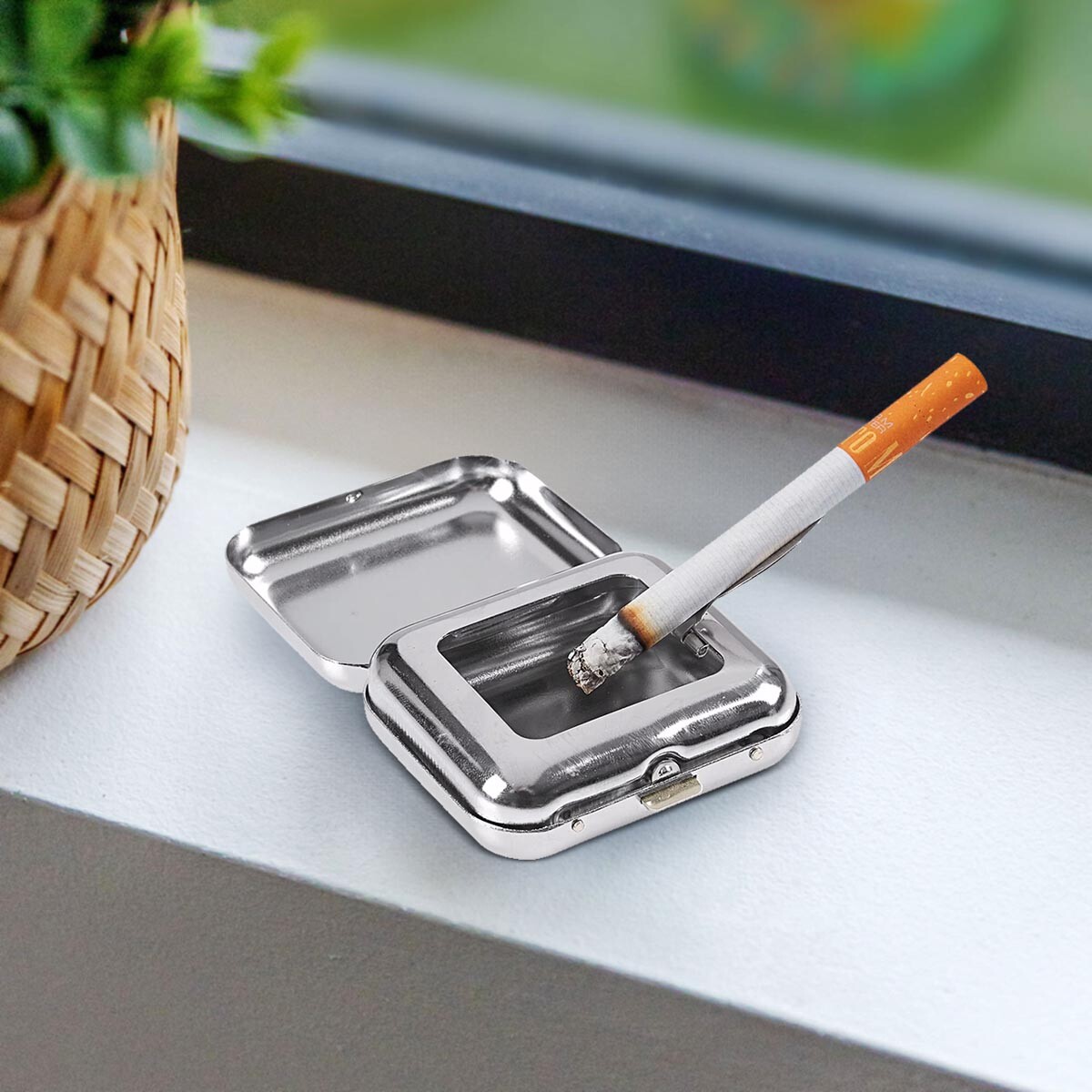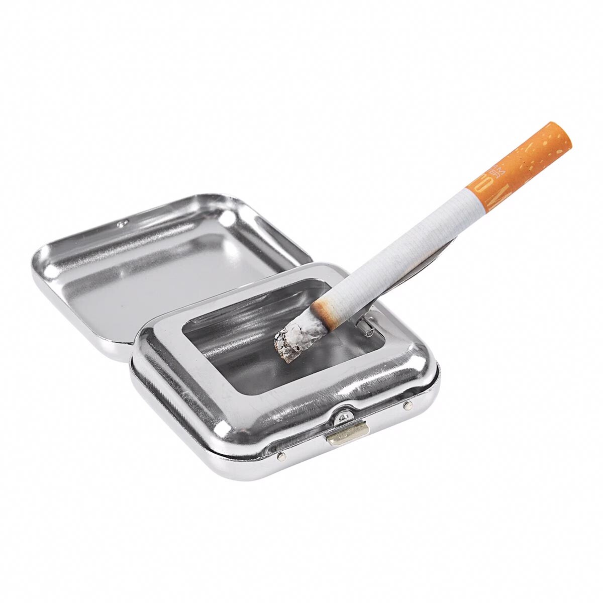 Dzięki tej kieszonkowej popielniczce w srebrnym kolorze możesz cieszyć się paleniem w dowolnym miejscu, unikając problematycznego wyrzucania popiołu i niedopałków na ziemię. Idealne rozwiązanie dla palaczy w podróży. Zmieści się w każdej kieszeni spodni. Materiał: metal. Wymiary: 6 x 5 x 2 cm.