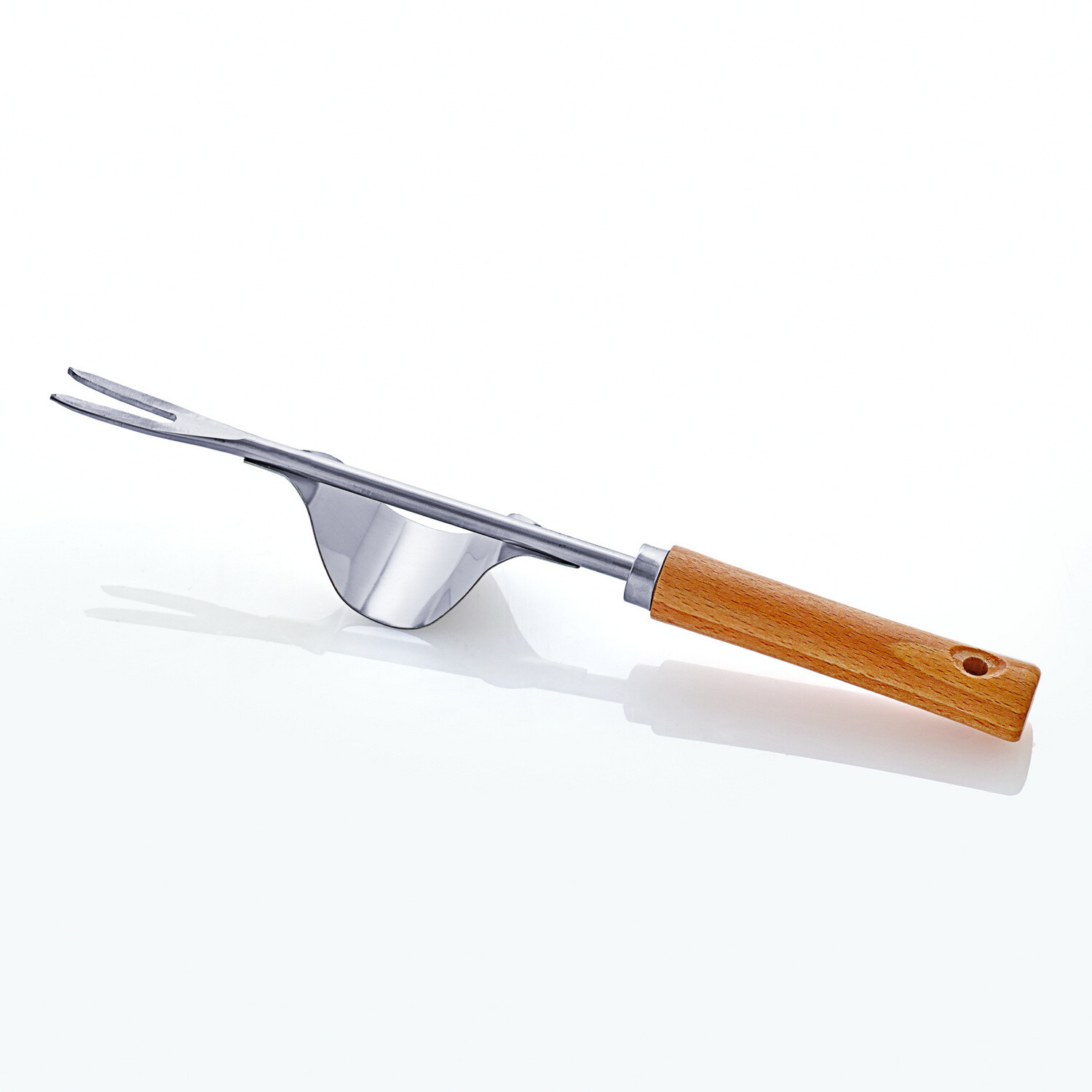 Z pomocą ostrych widełek można chwycić chwast za korzenie, a specjalny kształt tego przyrządu umożliwia podnoszenie nawet dużych roślin na zasadzie dźwigni - bez wysiłku.