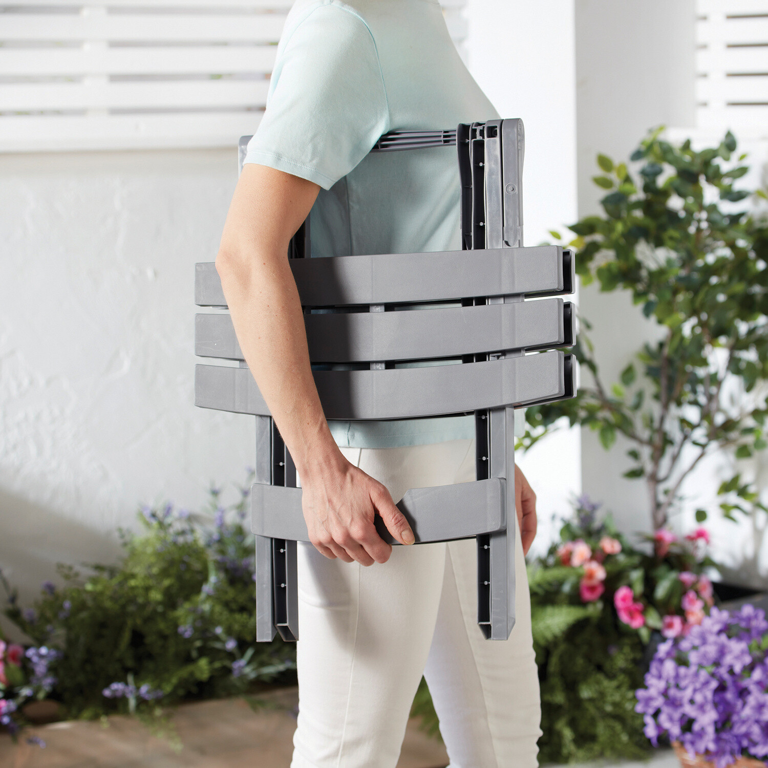 Solidny, stabilny i zawsze gotowy do użycia - wewnątrz i na zewnątrz! Ten praktyczny składany stolik jest zawsze pod ręką w małych ogrodach, na balkonie i na spontaniczne okazje. Ważący zaledwie 2 kg i wyposażony w praktyczny wpuszczany uchwyt, jest łatwy w transporcie i można go schować, aby zaoszczędzić miejsce.