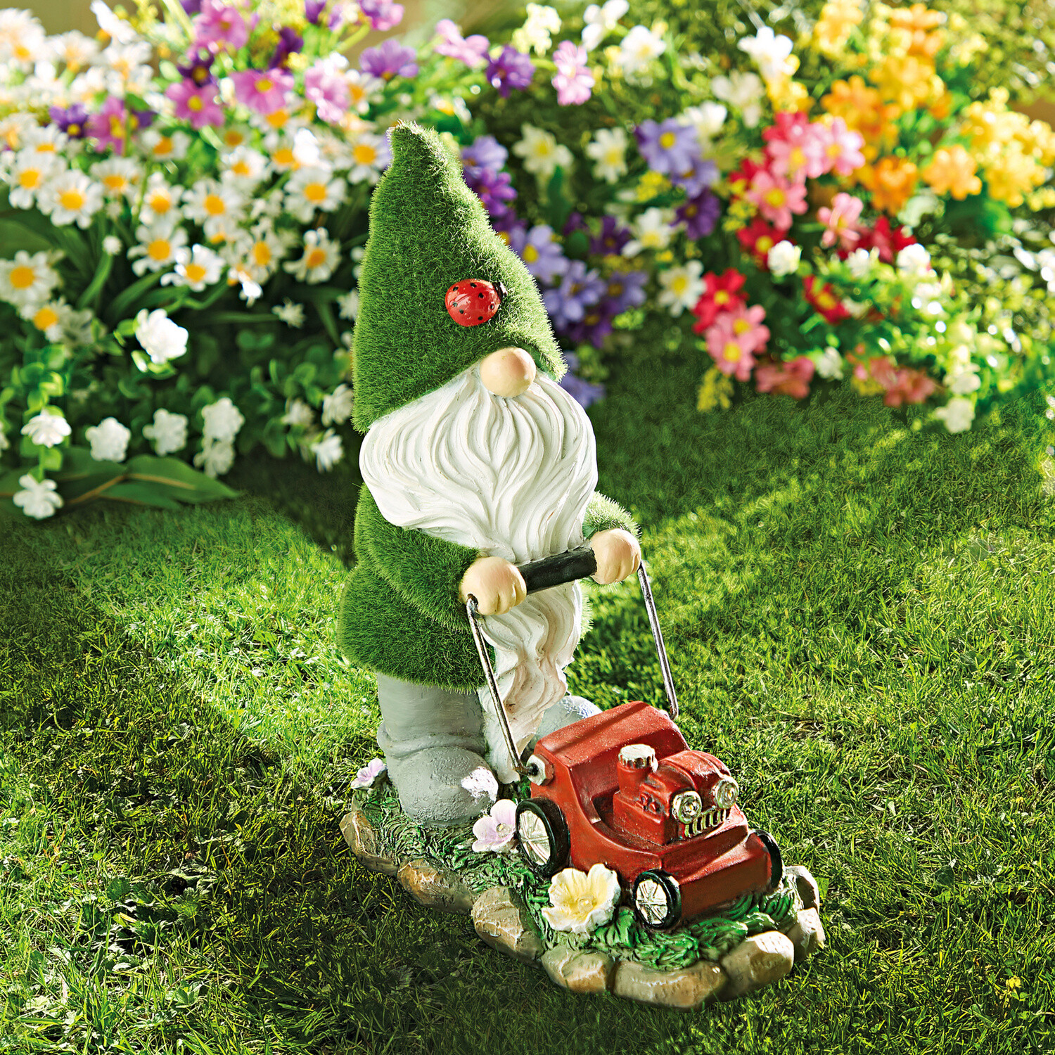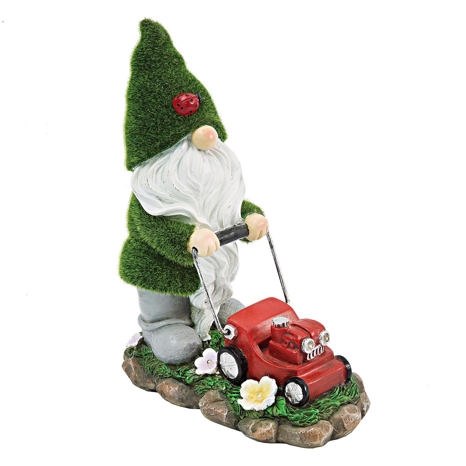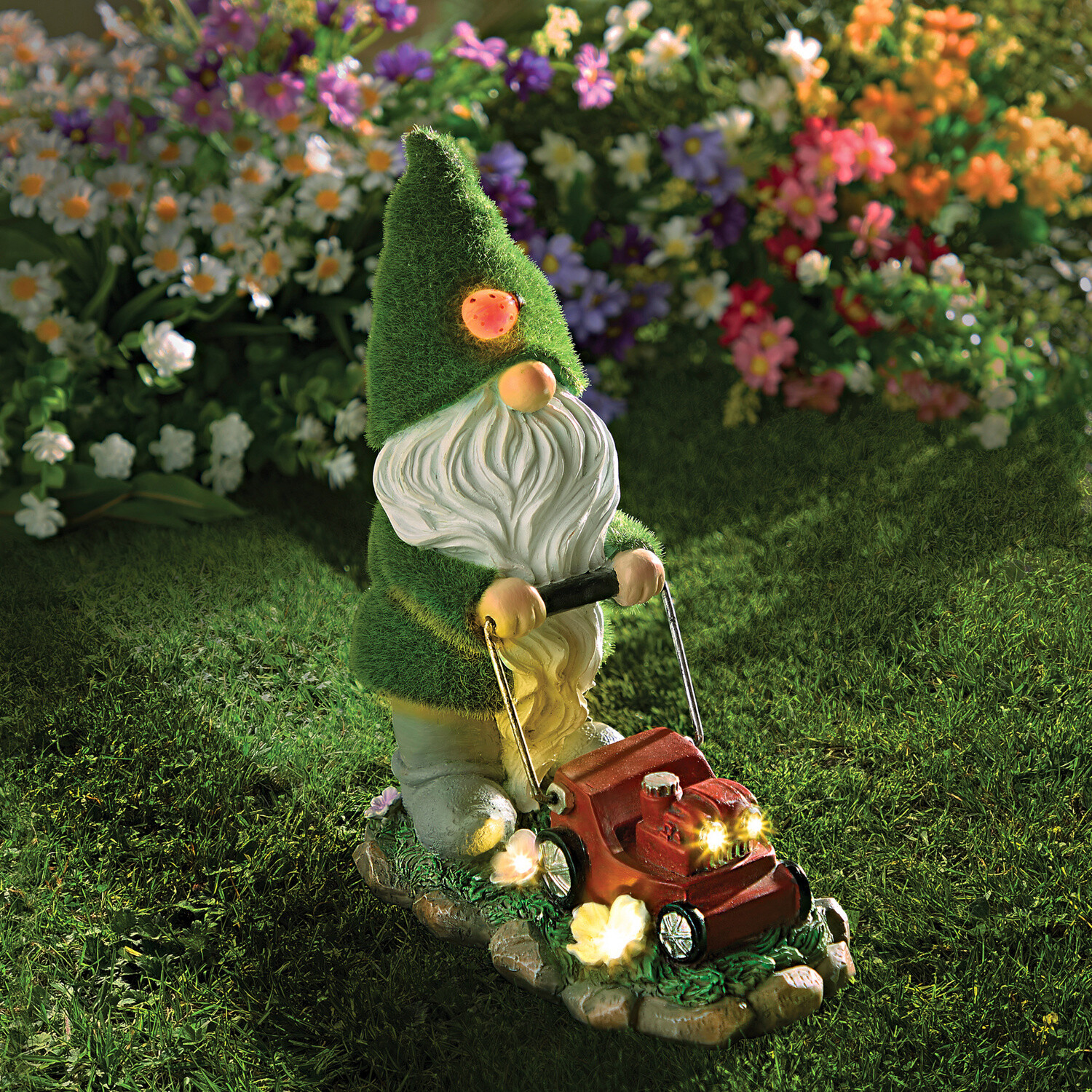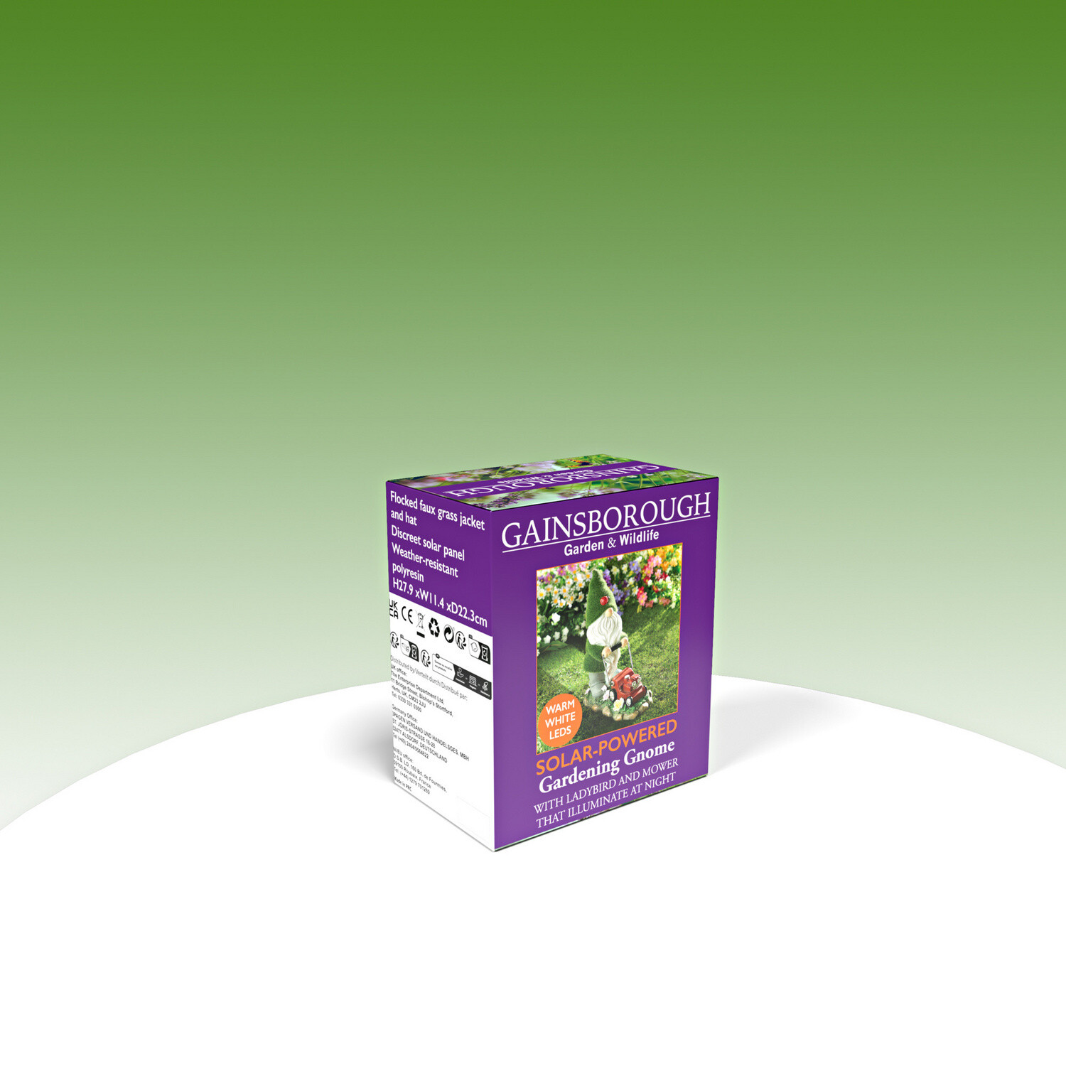 Nasz zabawny ogrodnik stanie się gwiazdą Twojego ogrodu. Jego kosiarka, kwiaty i motyl na spiczastej czapce rozświetlają się wieczorem dzięki energii słonecznej. Zasilany energią słoneczną. Odporny na warunki atmosferyczne. Gainsborough.