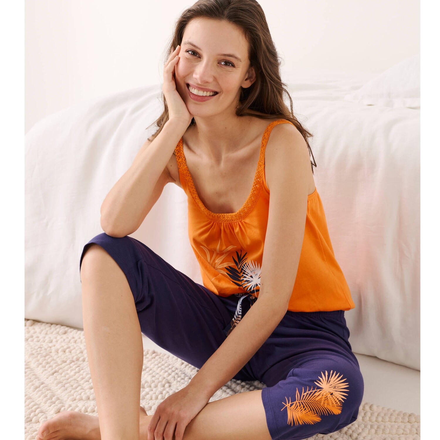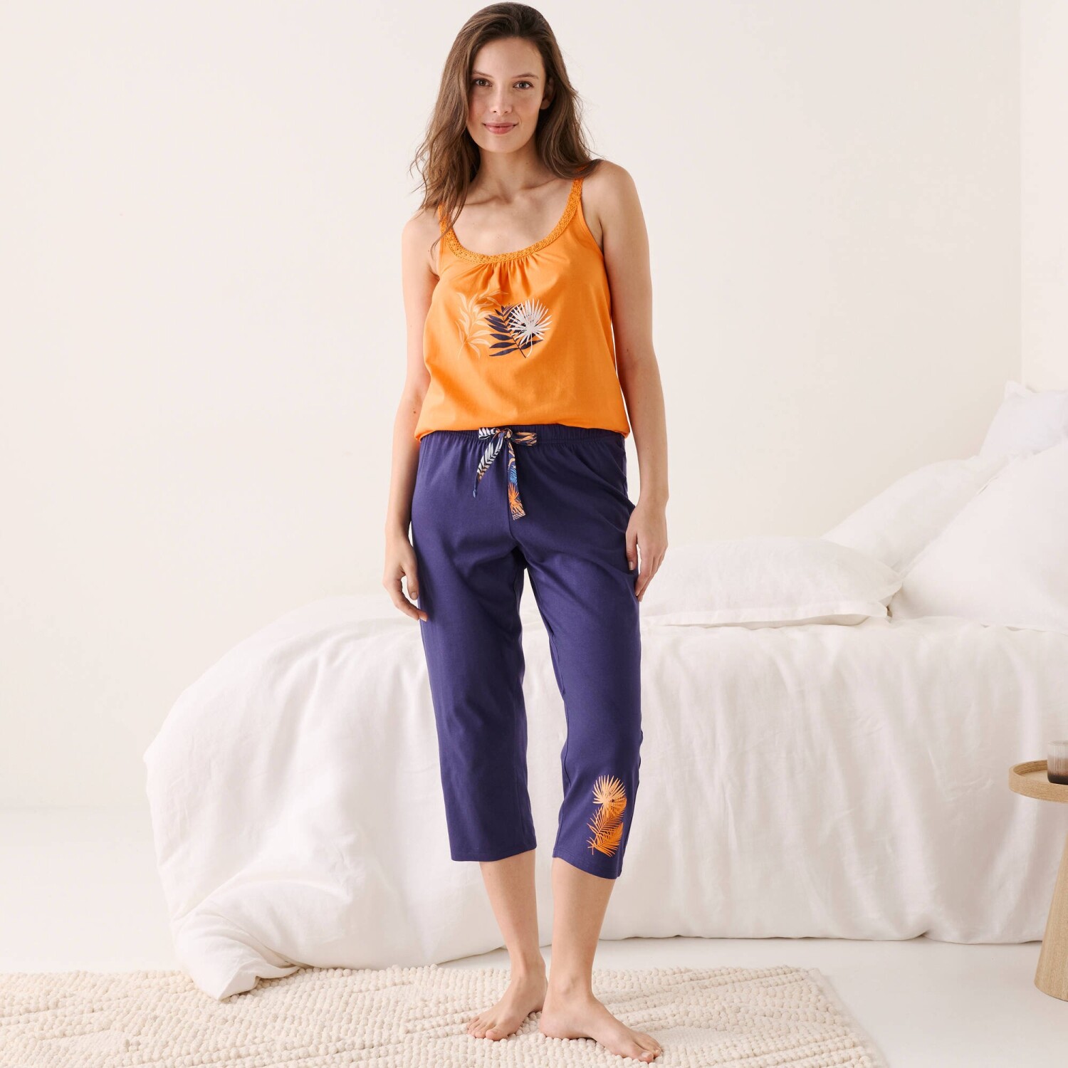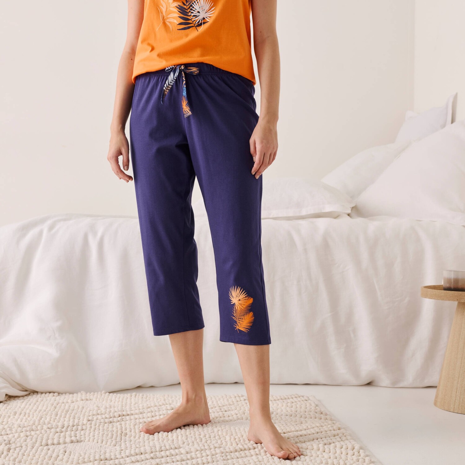 Łatwe do łączenia, spodnie piżamowe 3/4 z oryginalnym nadrukiem. Gumka w pasie. Nadrukowana kokardka w pasie. Nadruk ananasa z przodu. Wykonane z miękkiej w dotyku bawełny jersey. Można prać w pralce.
