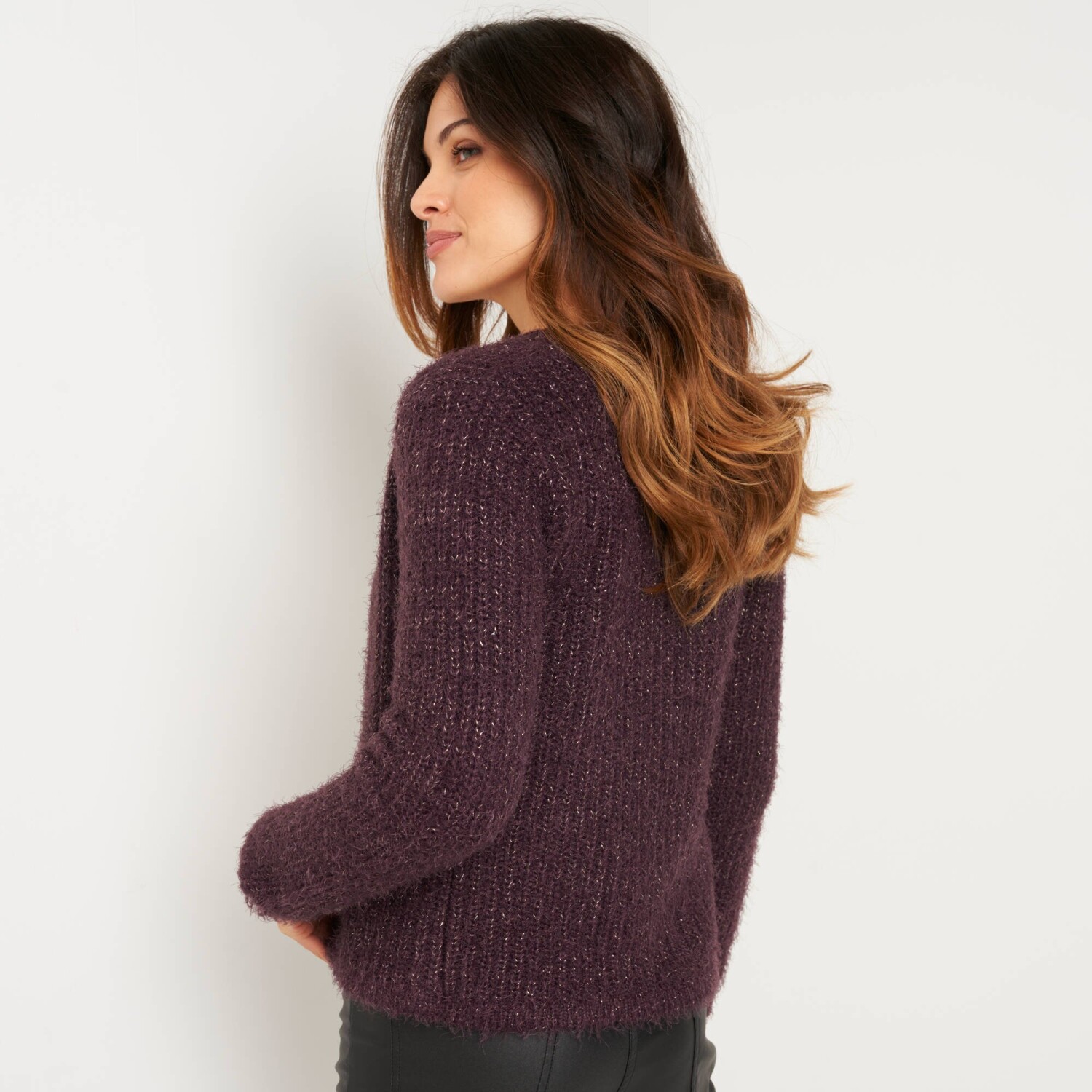 Sweter wykonany z oryginalnej dzianiny jest niezwykle miękki. Dostępny w różnych fasonach. Cienka dzianina z meszkiem. Bez zapięcia. Okrągły dekolt. Długie rękawy. Prosty dół. Można prać w pralce.