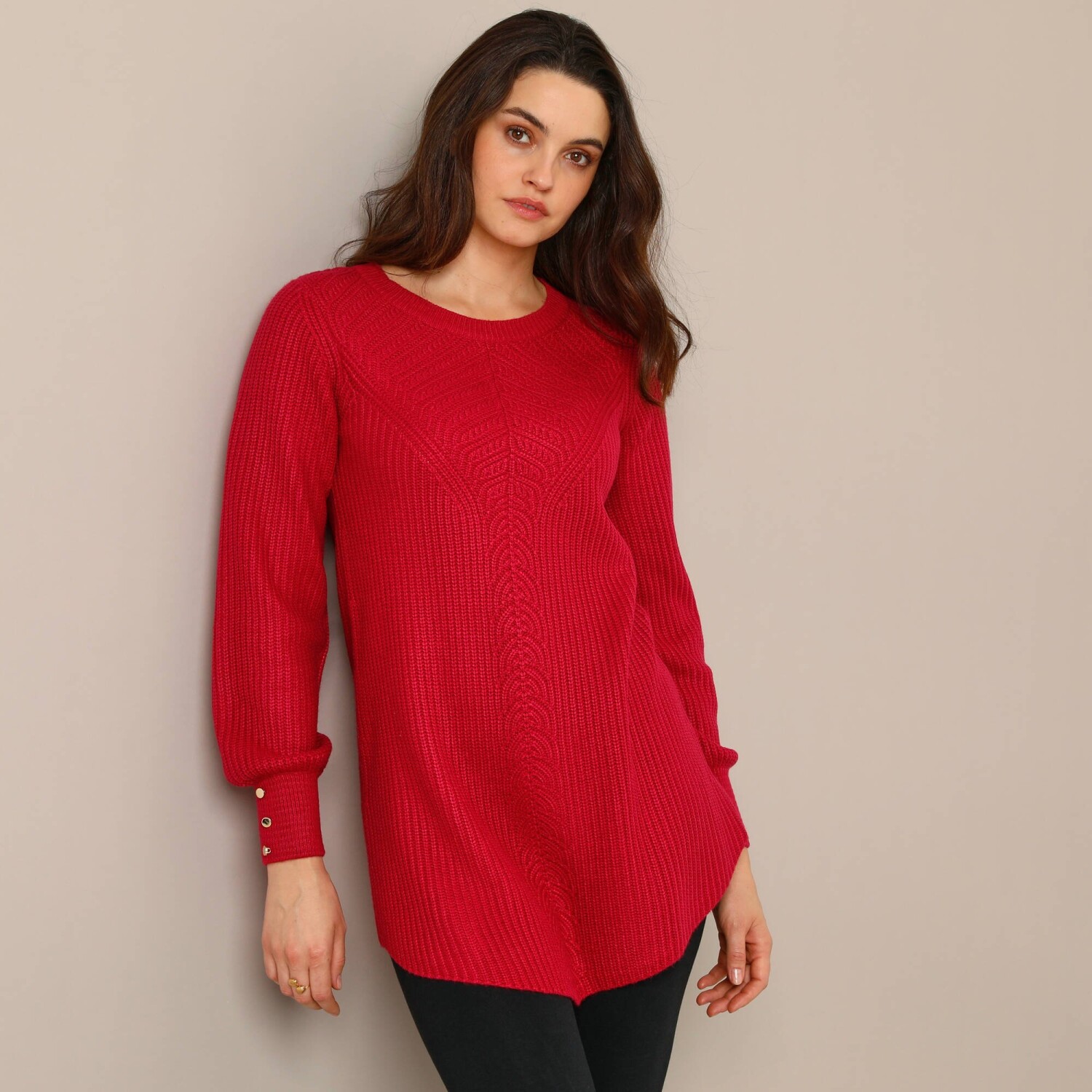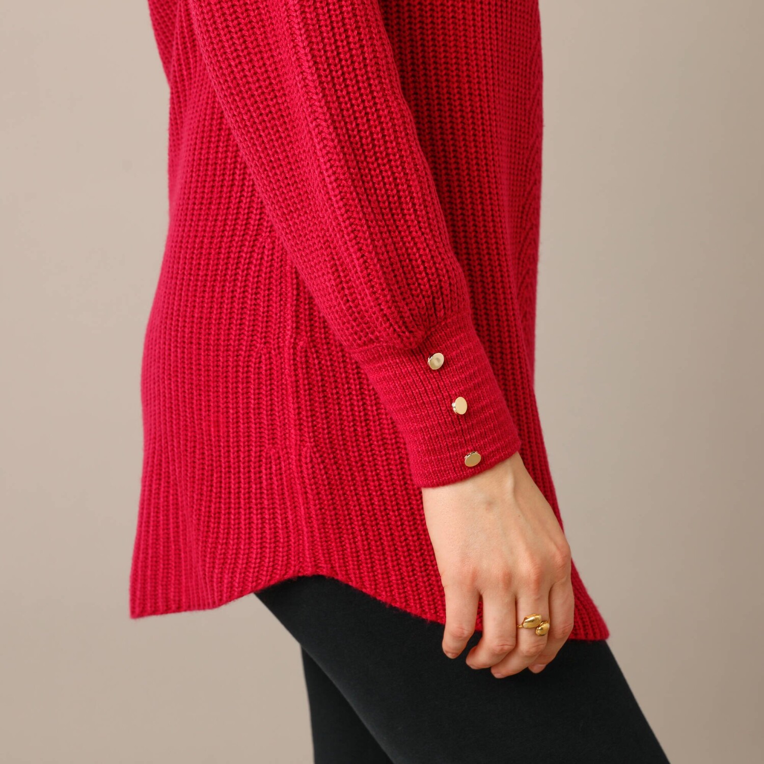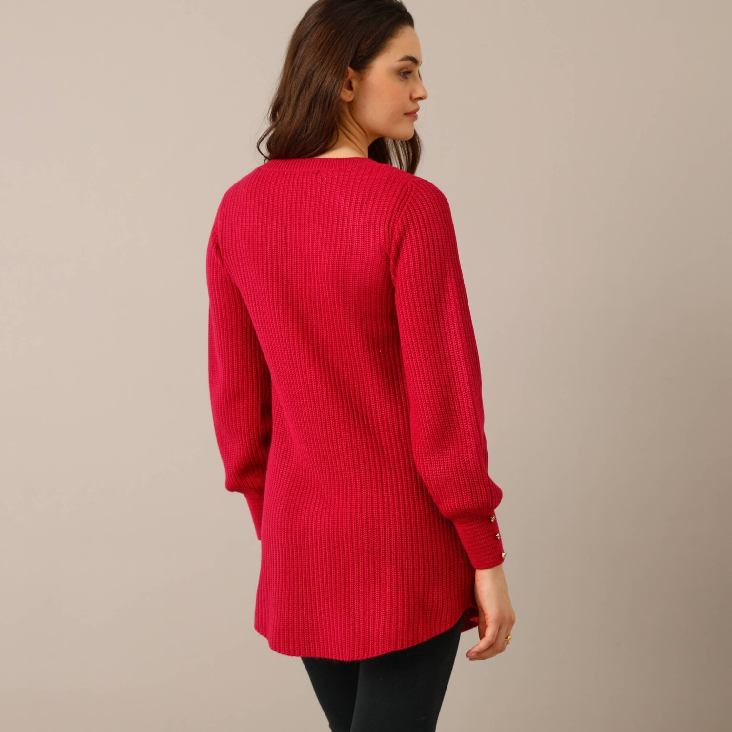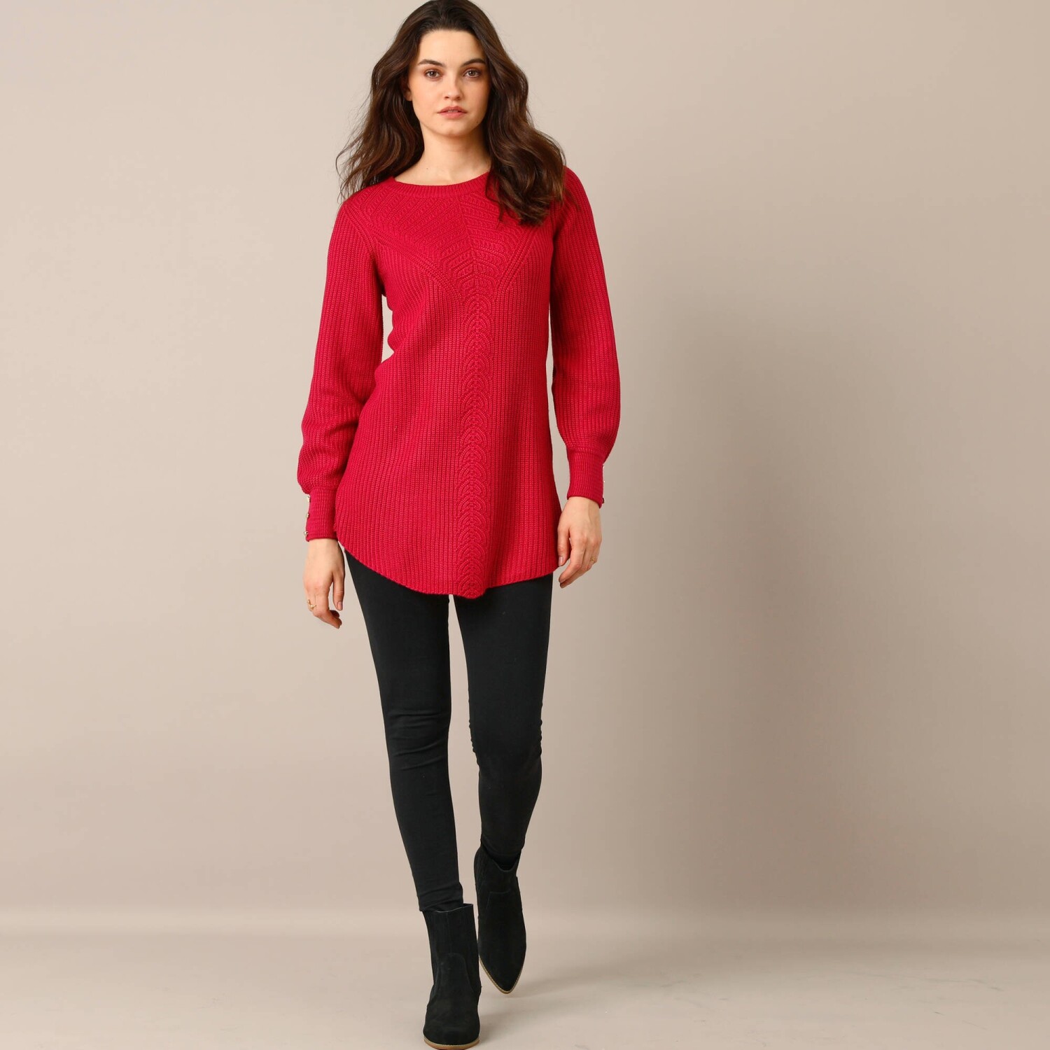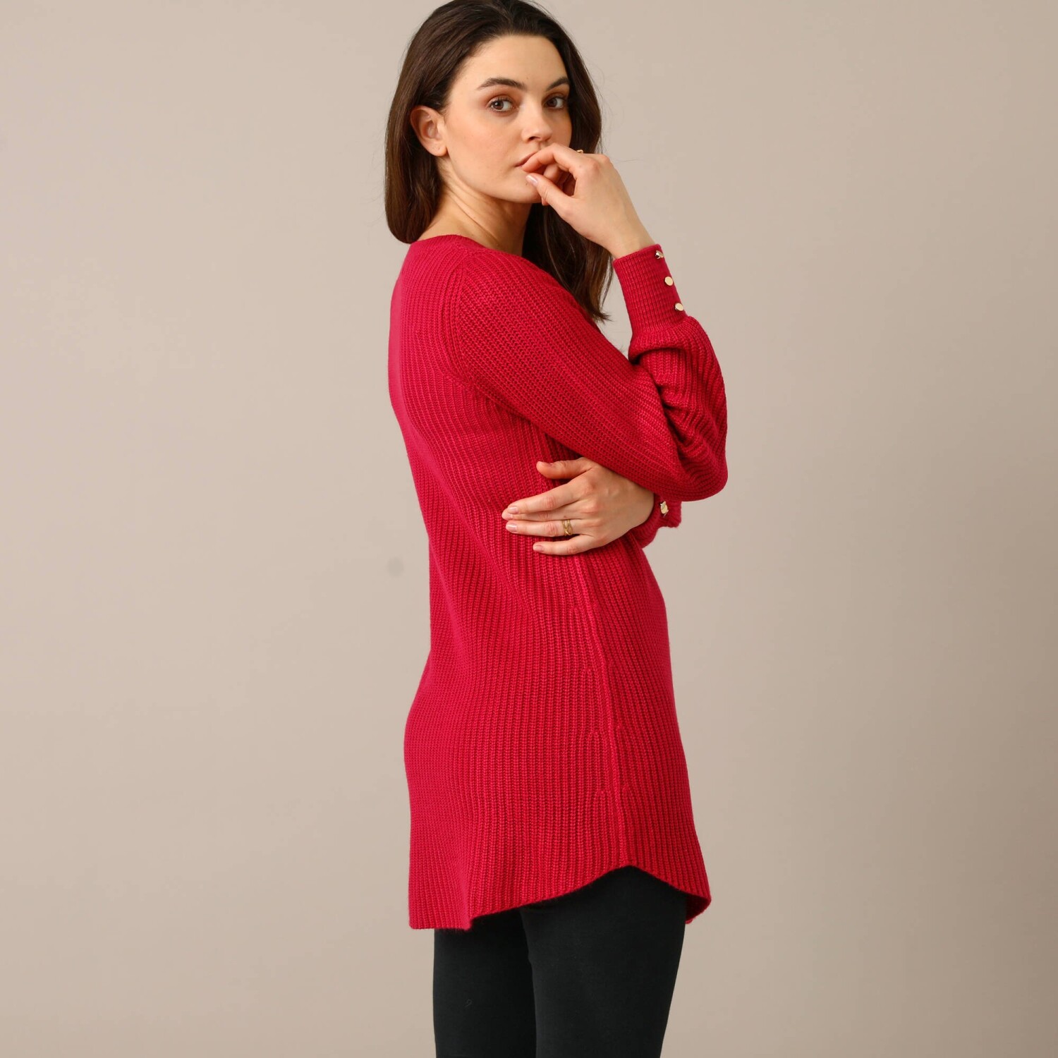 Luźny sweter z dekoltem w szpic sprawdzi się na różne okazje. Delikatna, miękka dzianina. Dekolt w szpic z szerokim elastycznym dołem. Długie rękawy. Prosty dół. Można prać w pralce.