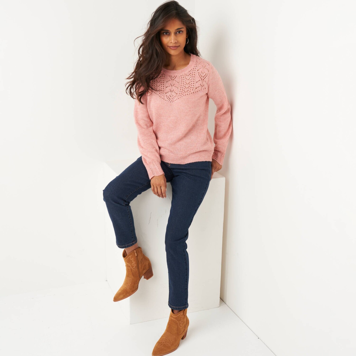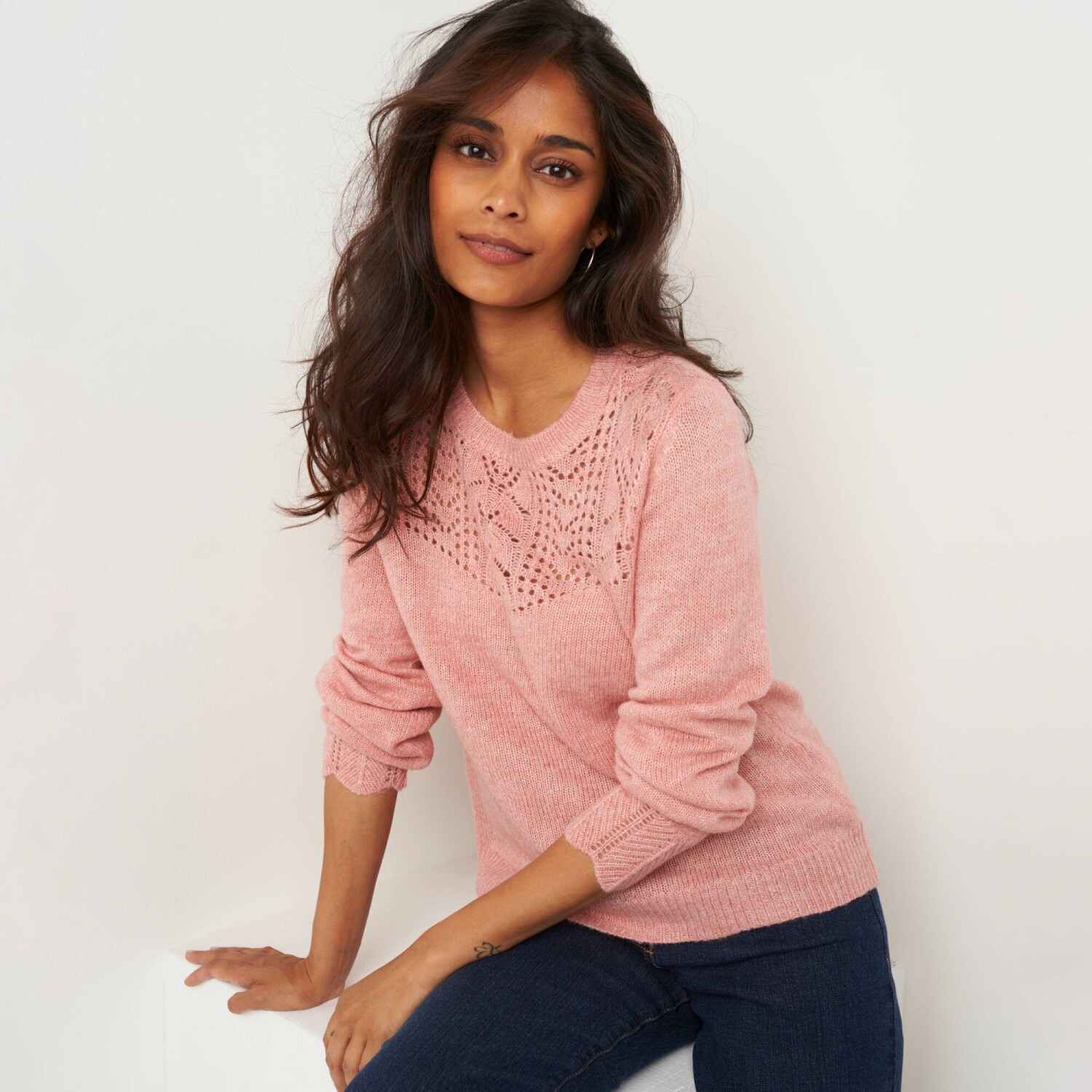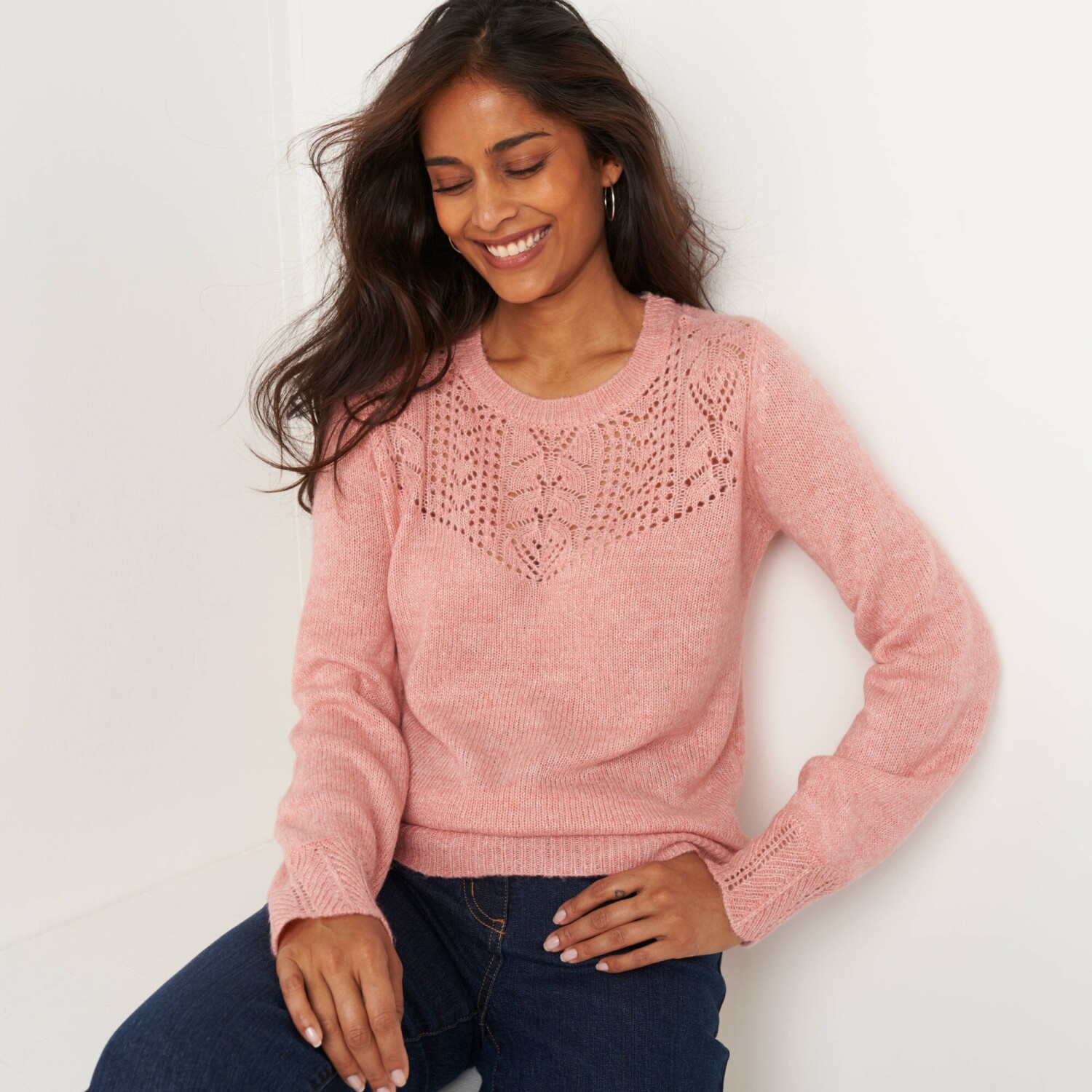 Luźny, a zarazem stylowy sweter powraca na scenę mody! Wykonany z dzianiny przypominającej moher. Idealny do noszenia z T-shirtem lub flanelową koszulą w kratę. Rękawy typu „batwing”. Okrągły, luźny dekolt. Rękawy typu „batwing” sięgające do łokci. Obniżone ramiona. Wzór warkoczowy i gładki. Prosty dół. Można prać w pralce.