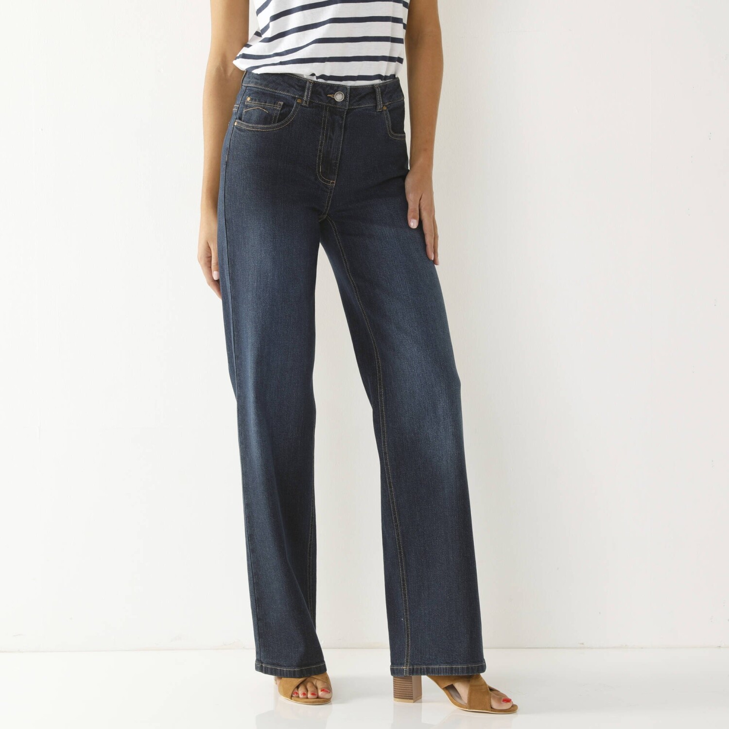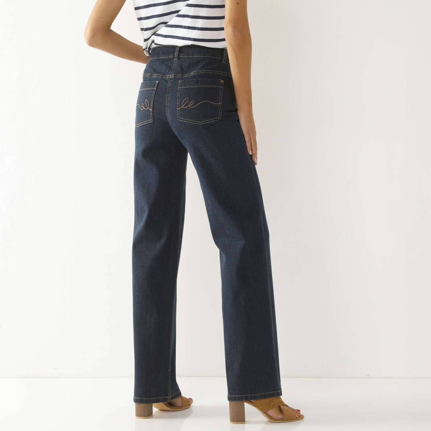 Przedstawiamy klasyczne czarne jeansy o prostym kroju, z wysokim stanem i zdobieniami z kryształków! Modny, szeroki, prosty krój. Wysoki stan. Ozdoba z kryształków z przodu. Profilowany pas ze szlufkami. Zapięcie na zamek błyskawiczny i guzik. Pięć kieszeni. Podwyższona część z tyłu. Spodnie wykończone przeszyciem. Kontrastowe szwy. Standard 100 według Oeko-Tex (nr CQ 1216 / 3 IFTH). Ten znak oznacza produkty tekstylne poddane testom laboratoryjnym na obecność szerokiej gamy substancji szkodliwych, a produkt jest bezpieczny w warunkach wykraczających poza obowiązujące normy. Można prać w pralce.