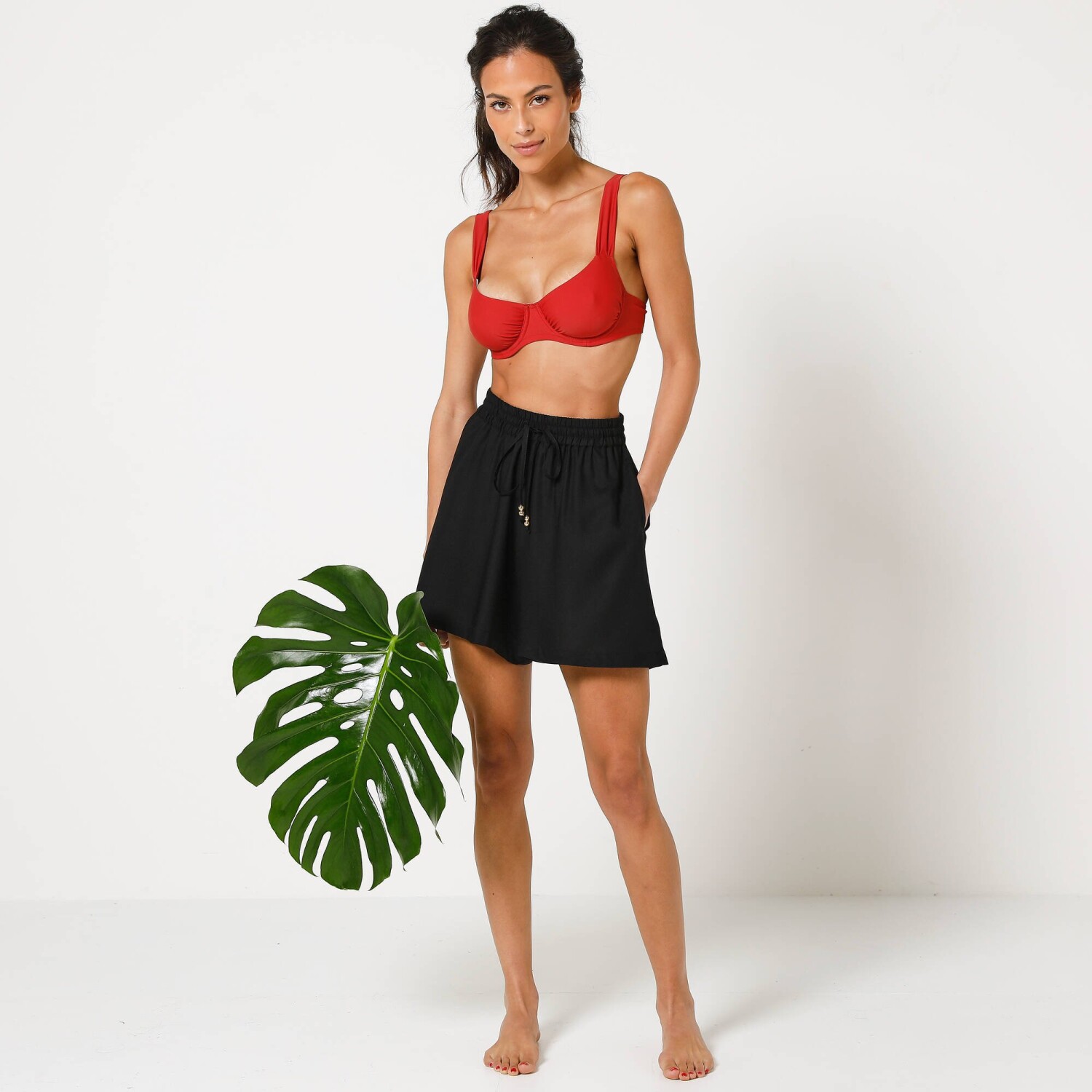 Lniane spodnie 3/4 wykonane z elastycznej dzianiny, wszystko dla Twojej wygody. Dopasowany krój. Regularna wysokość talii. Elastyczny ściągacz w pasie. Dopasowany dzianinowy pas. Podniesiony tył. Mock fly. 2 kieszenie. 2 naszyte kieszenie z tyłu. Rozcięcia na końcach nogawek. Oeko-Tex standard 100 (nr CQ1216/3). Znak ten oznacza produkty tekstylne, które zostały poddane testom laboratoryjnym na obecność szerokiej gamy szkodliwych substancji, a produkt jest bezpieczny w stopniu przekraczającym obowiązujące normy. Prać w temperaturze 30°C.