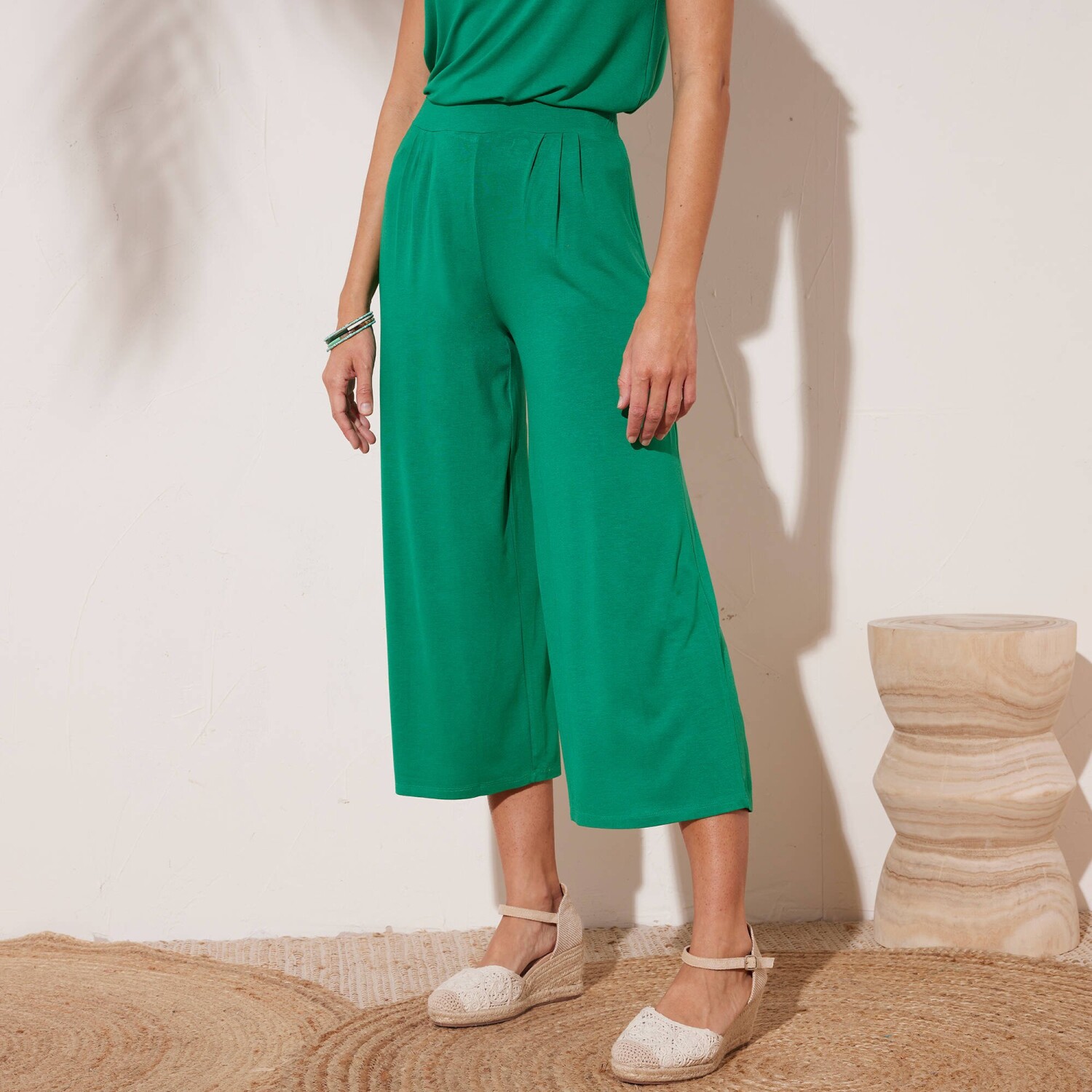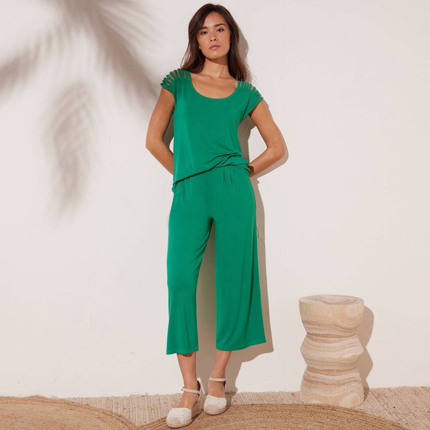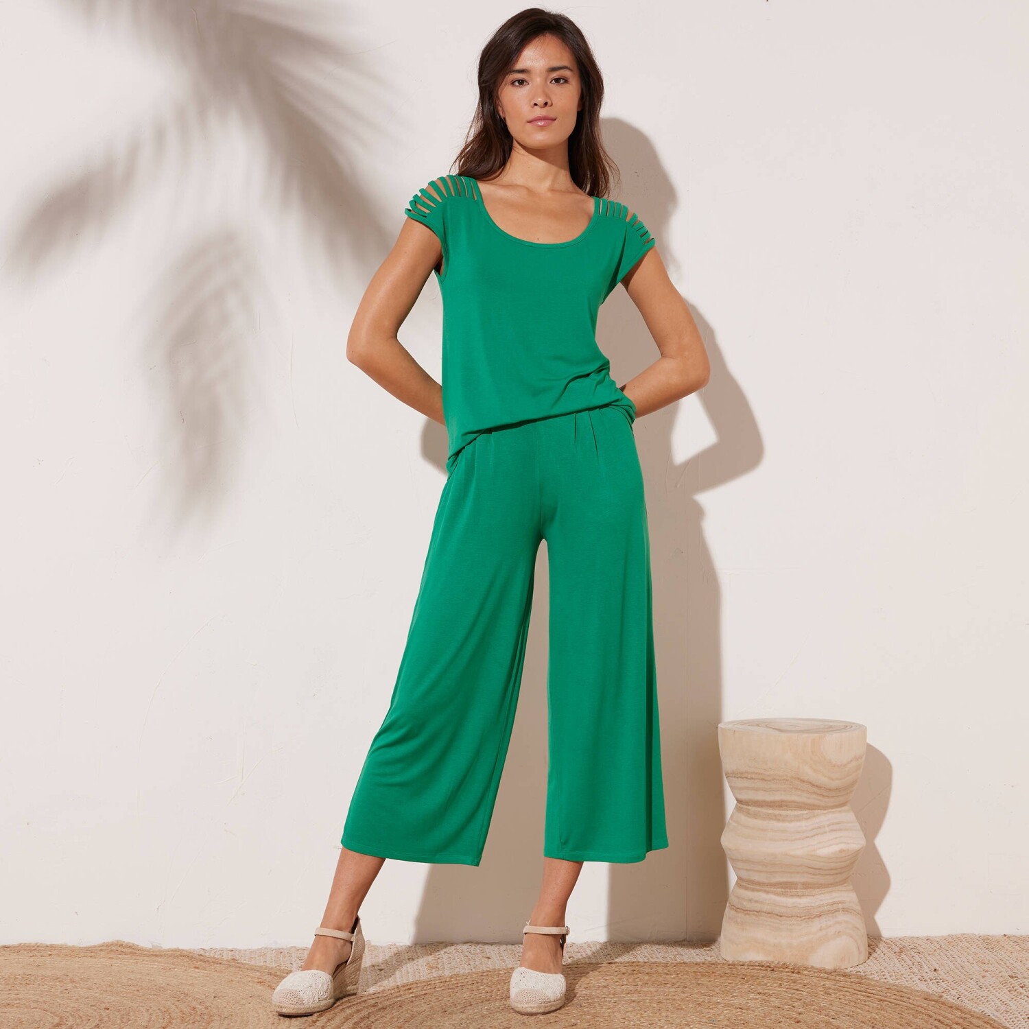 Eleganckie i wygodne – wypróbuj zestaw 2 szerokich spodenek. Idealne do uprawiania sportu, rekreacji lub pływania. Zestaw 2 sztuk. Spodenki z efektem spódnicy. Elastyczny pas. Bawełniany dżersej, łatwy w pielęgnacji. Standard 100 według Oeko-Tex (nr CQ 1216/3 IFTH). Ten znak oznacza produkty tekstylne poddane testom laboratoryjnym na obecność szerokiej gamy substancji szkodliwych, a produkt jest bezpieczny w użyciu, wykraczając poza obowiązujące normy. Można prać w pralce.