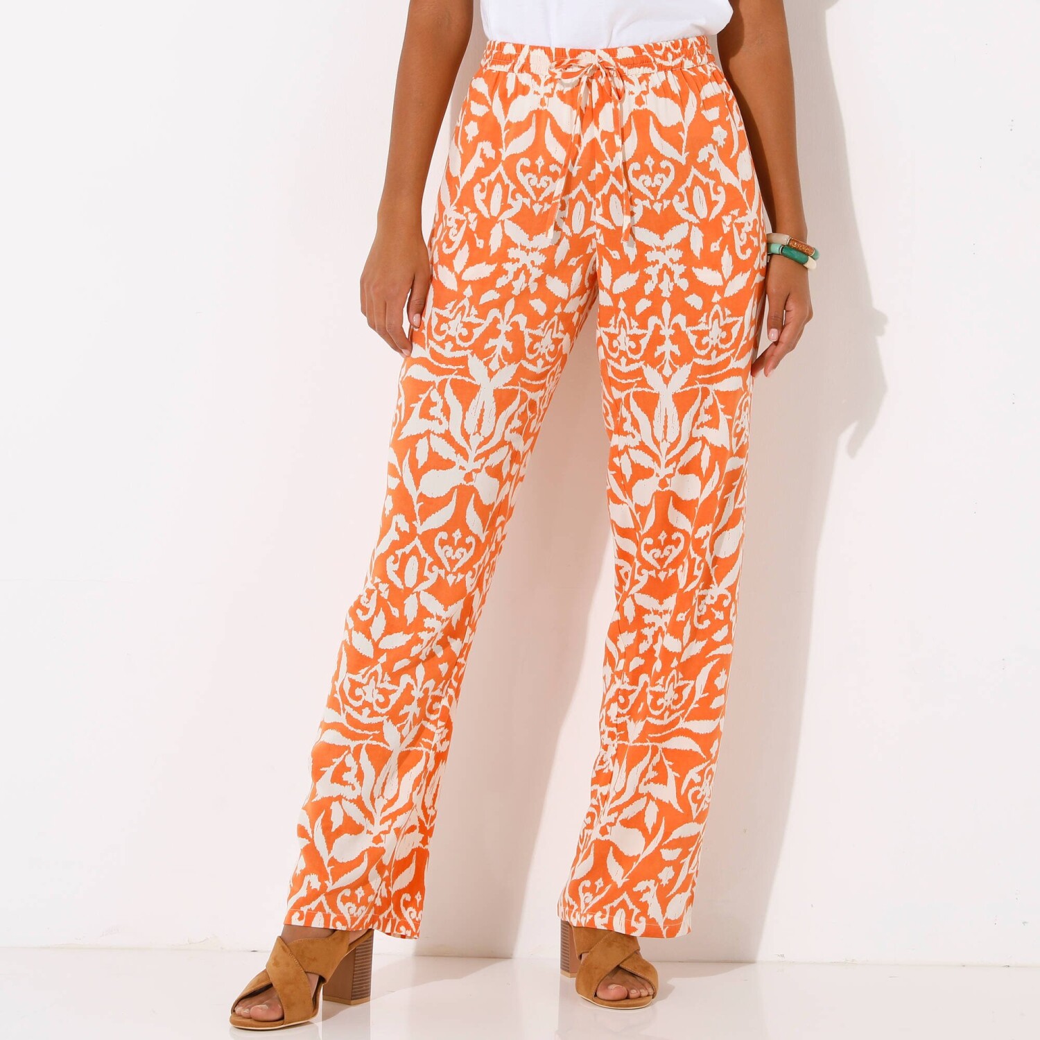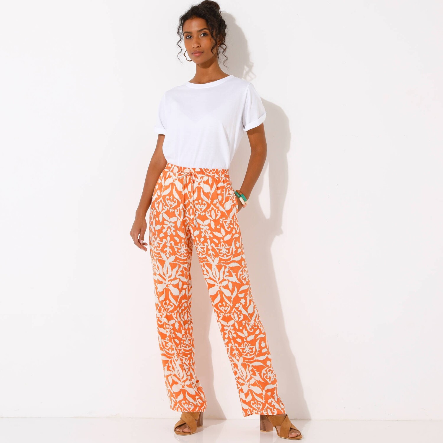 Spodnie z szerokimi nogawkami dla drobnej sylwetki, wiskoza-bawełna-len