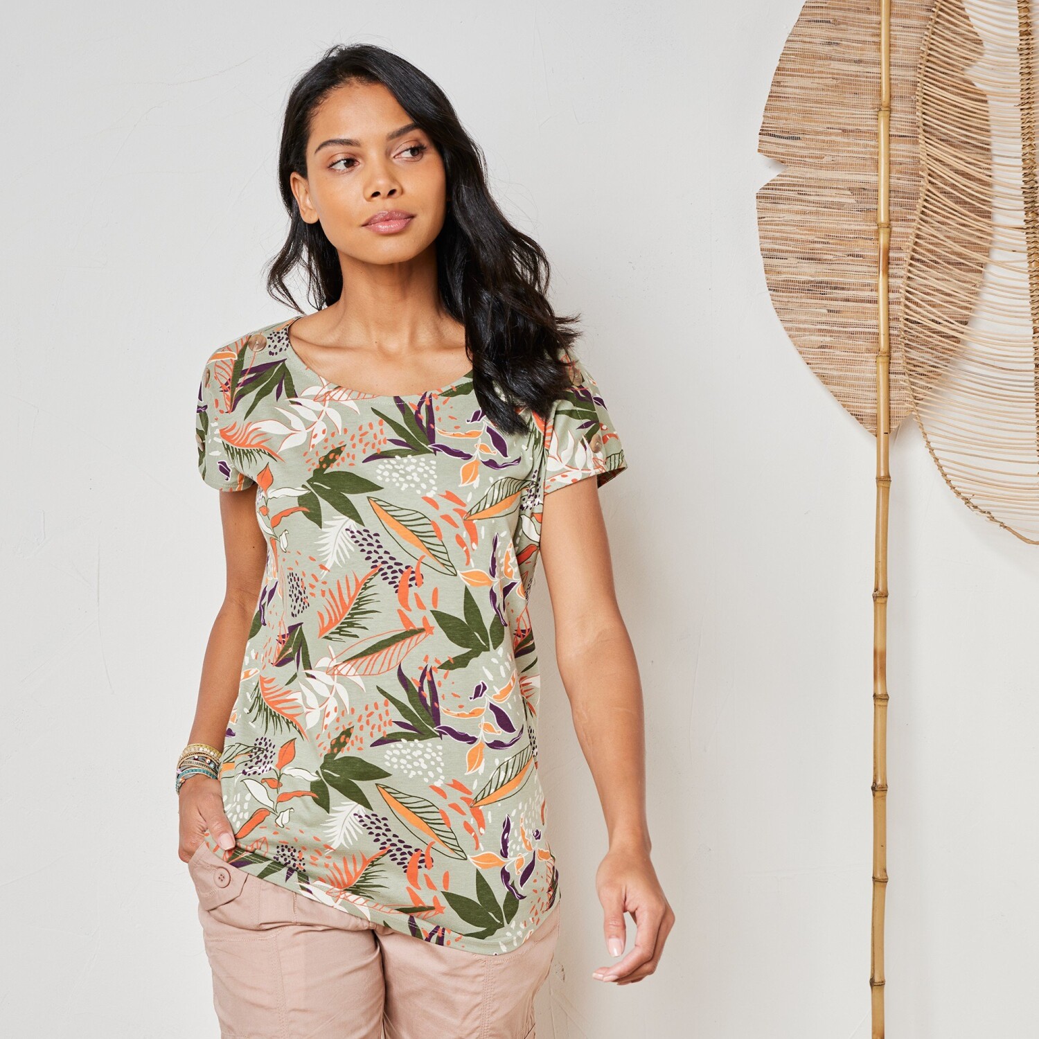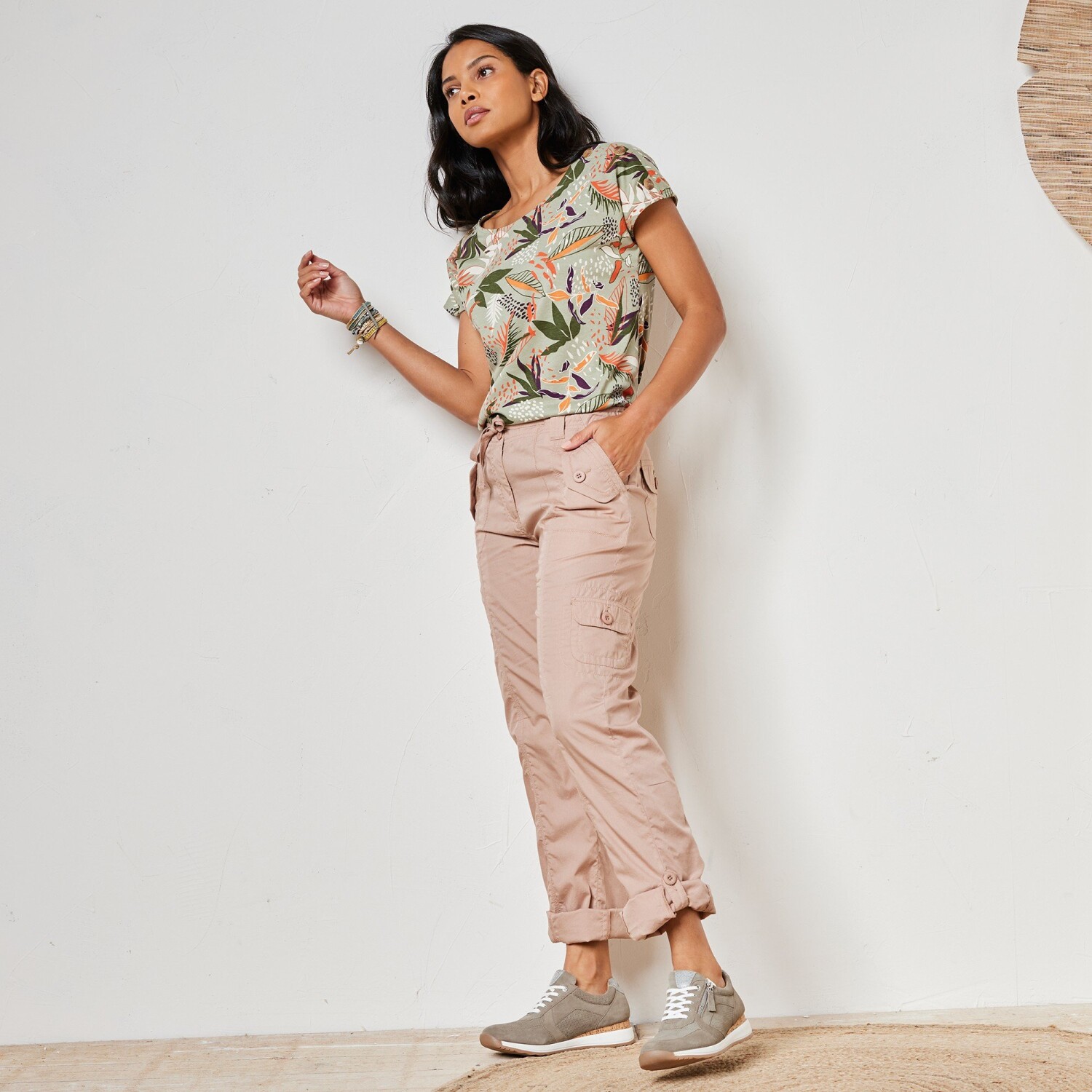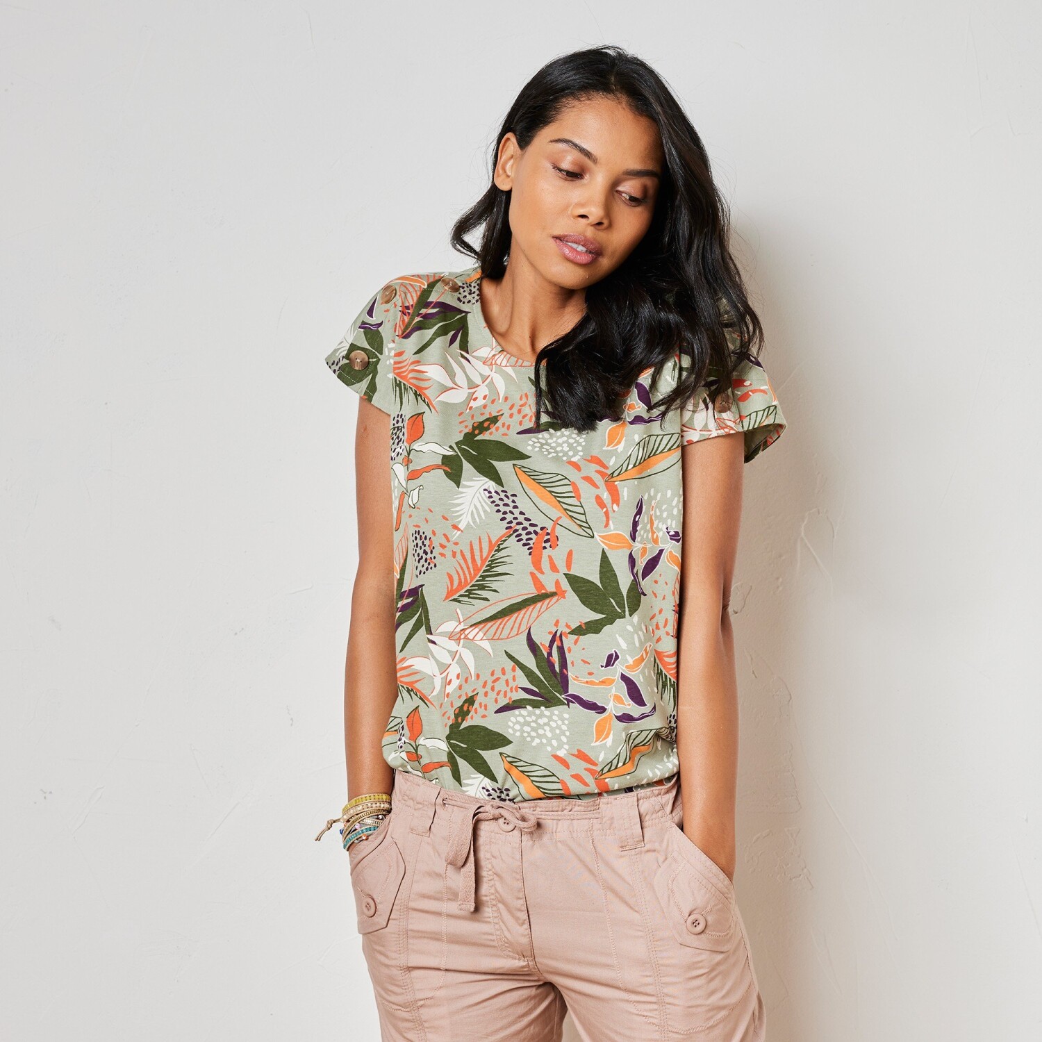 Wykonana ze zmysłowego woalu z domieszką błyszczących włókien bluzka z pewnością doda Ci blasku. Luźny krój. Okrągły dekolt z falbaną. Falbany pod dekoltem. Raglanowe rękawy 3/4. Elastyczne mankiety z marszczeniami. Prosty dół. Do noszenia na dolnym topie, aby zmniejszyć efekt prześwitywania. Blancheporte wybrał poliester z recyklingu, przyczyniając się do walki z odpadami i zachęcając do bardziej odpowiedzialnej konsumpcji, która szanuje środowisko. Można prać w pralce.