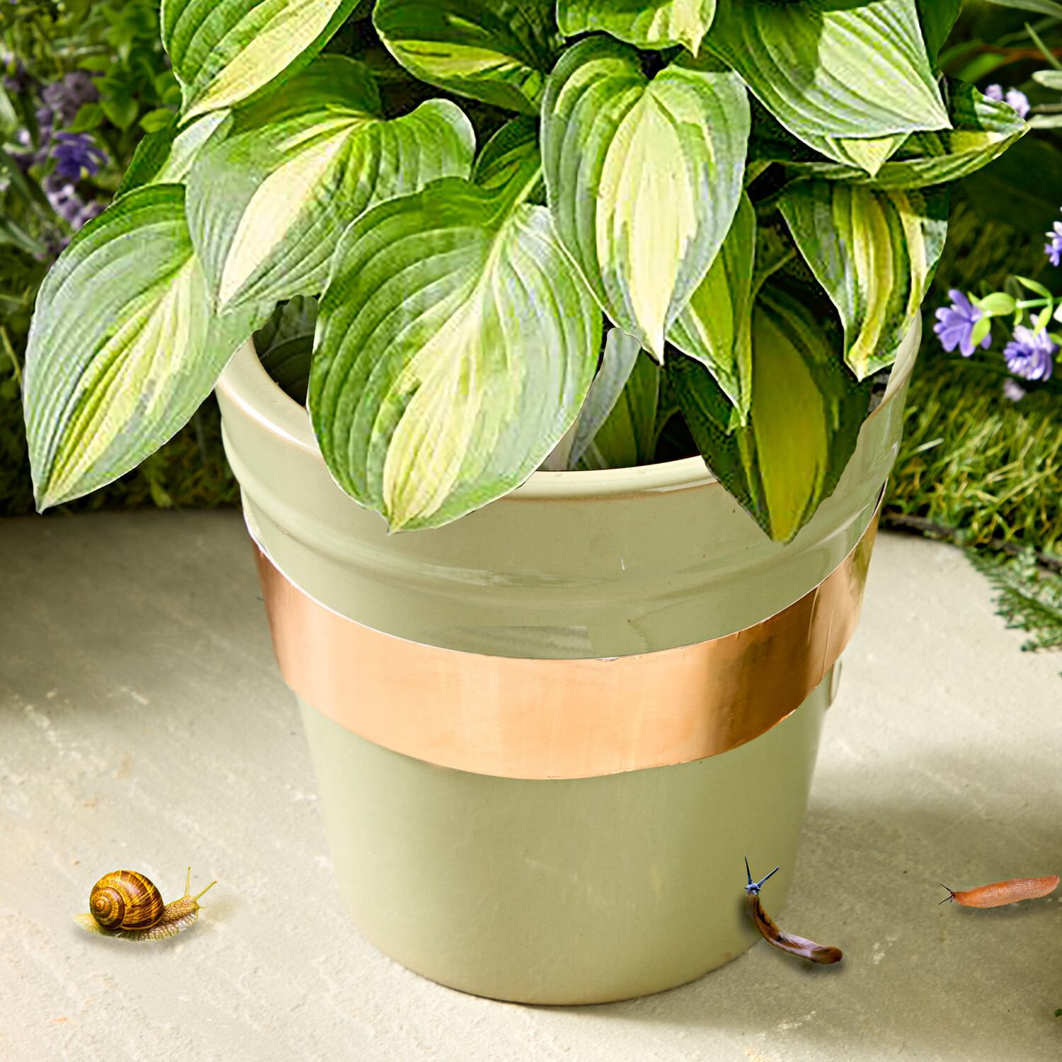Wystarczy przykleić miedzianą taśmę wokół doniczek i wanien, a rośliny zostaną oszczędzone. Metalowa taśma powoduje porażenie i odstrasza ślimaki.