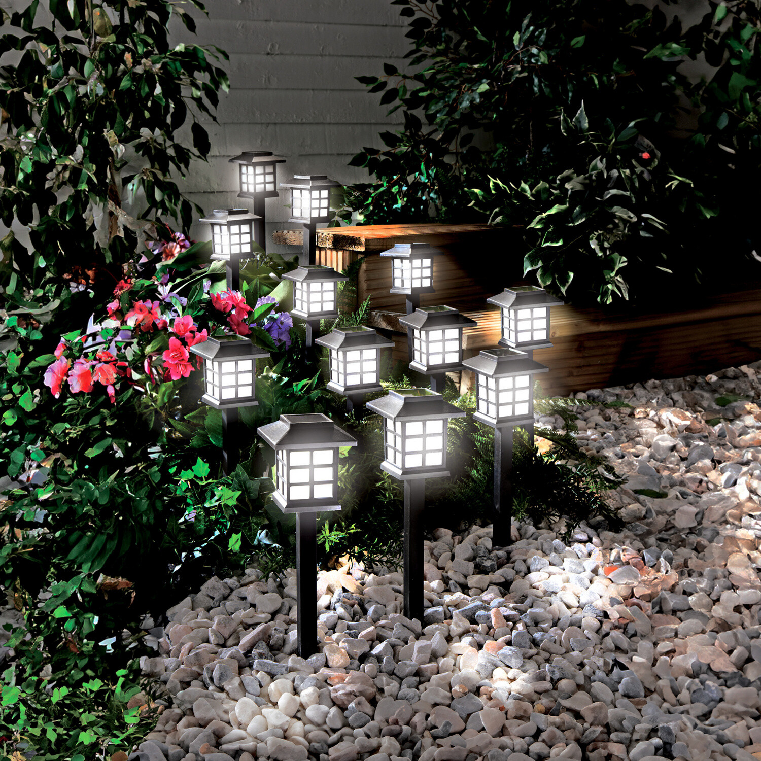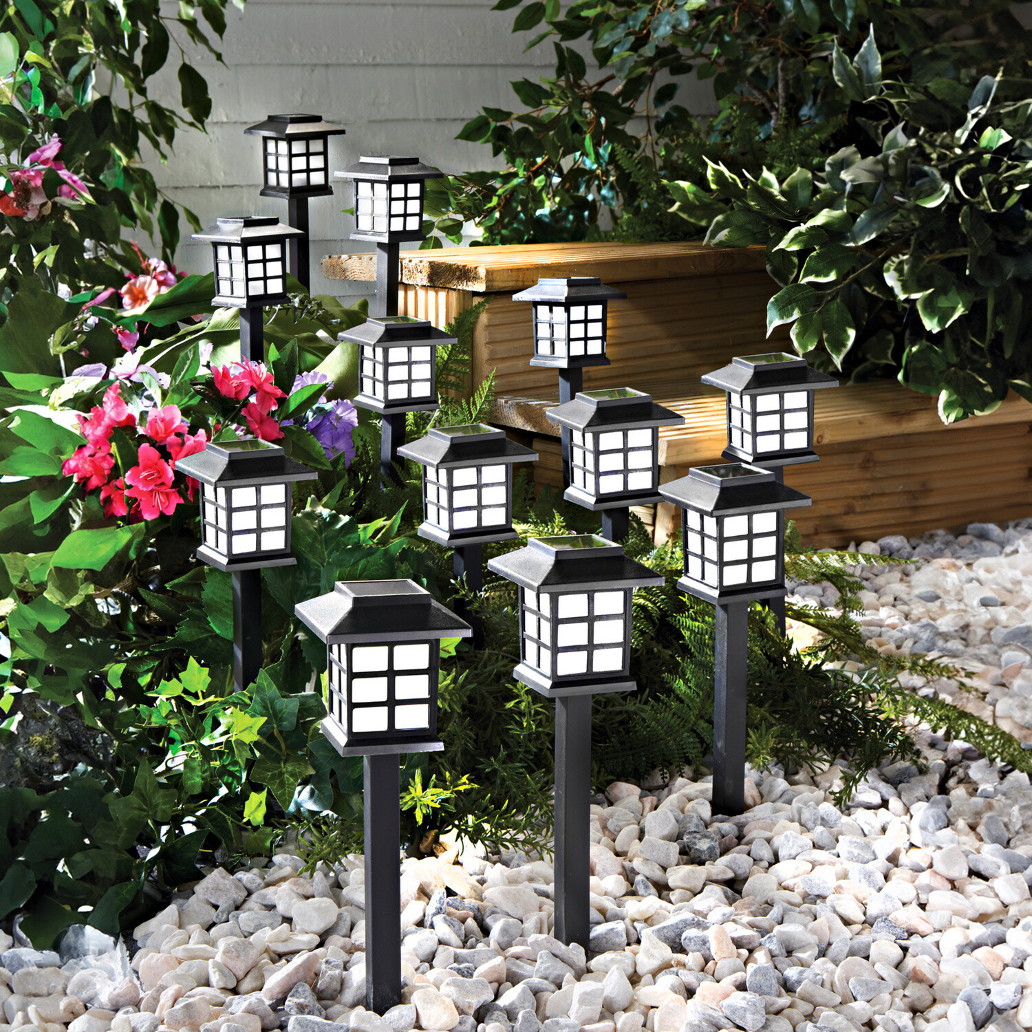 Na płocie, balustradzie czy balkonie – ta dekoracyjna girlanda z fioletowymi petuniami wnosi powiew letniego rozkwitu w ciągu dnia i automatycznie rozświetla się wieczorem dzięki 25 ciepłobiałym diodom LED. 25 ciepłobiałych diod LED. Odporna na warunki atmosferyczne. Zasilana energią słoneczną. Gainsborough.