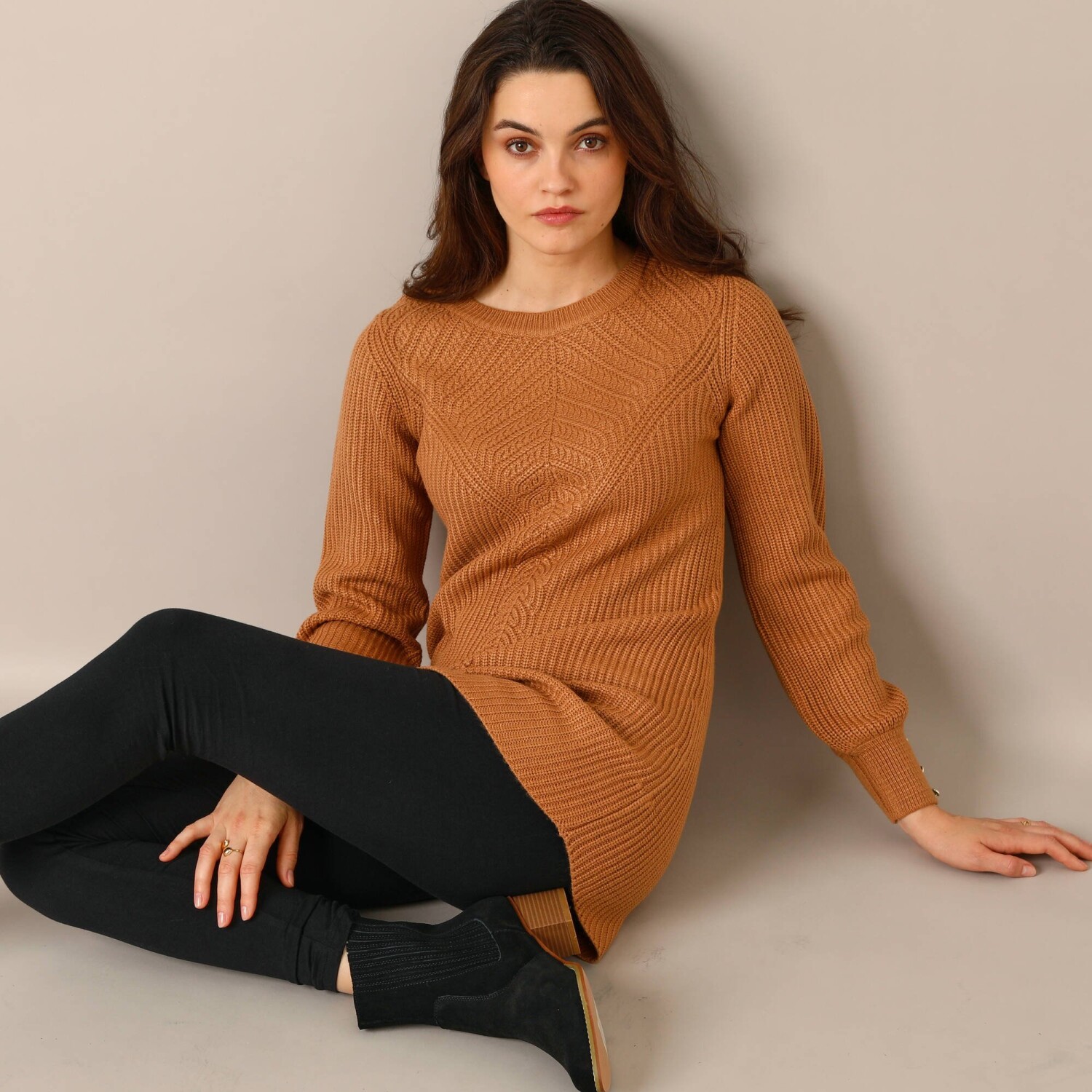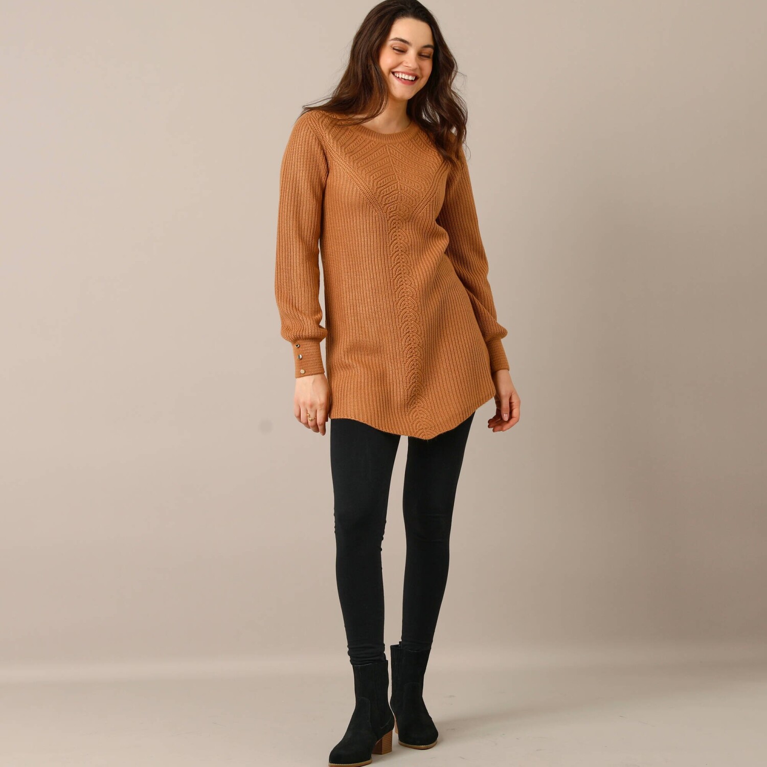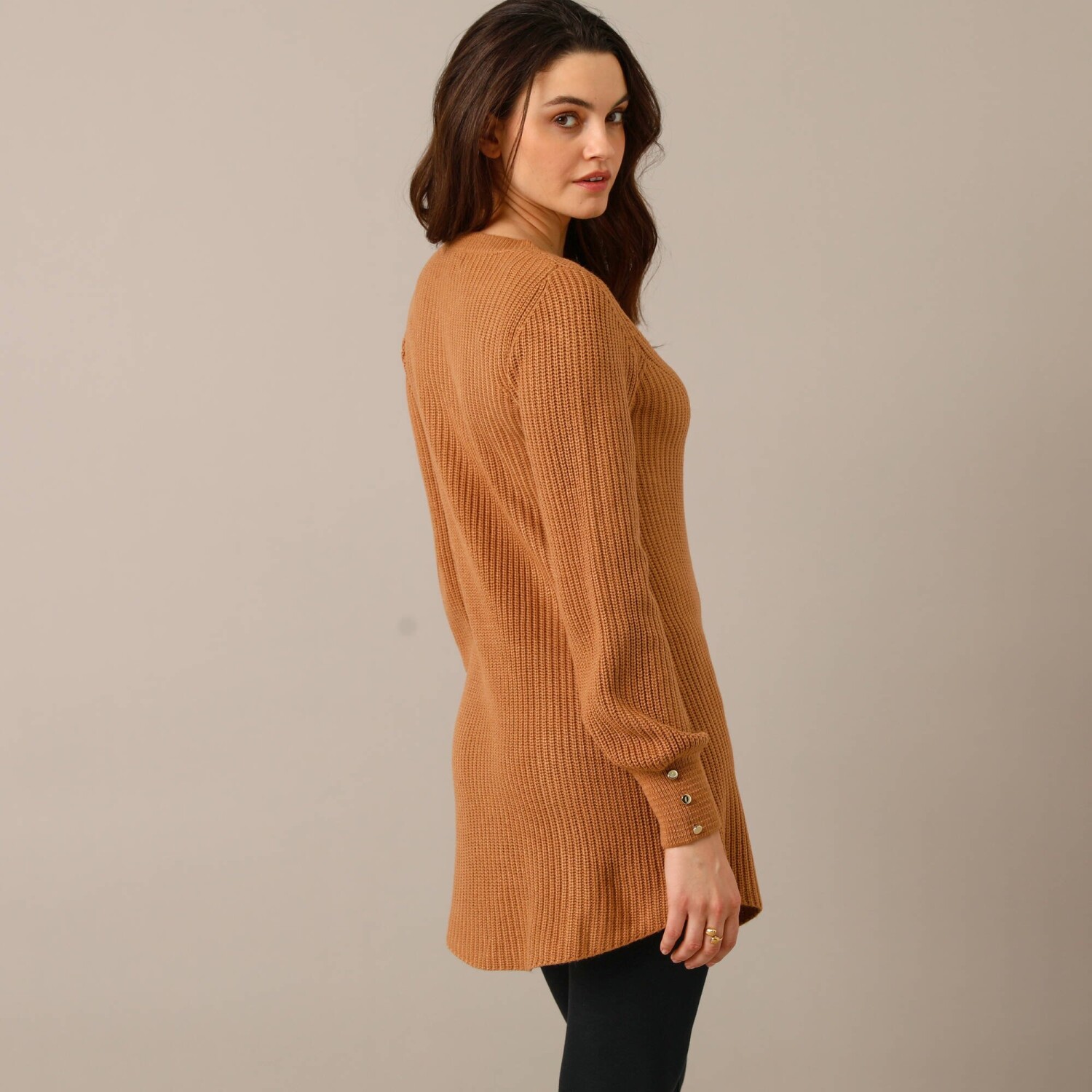 Elegancka z cienkiej dzianiny! Lekki i swobodny, z pięknym dekoltem V, przedłużonym tyłem i dwoma dzianinowymi sercami - cudownie miękki i odpowiedni do wielu kombinacji.