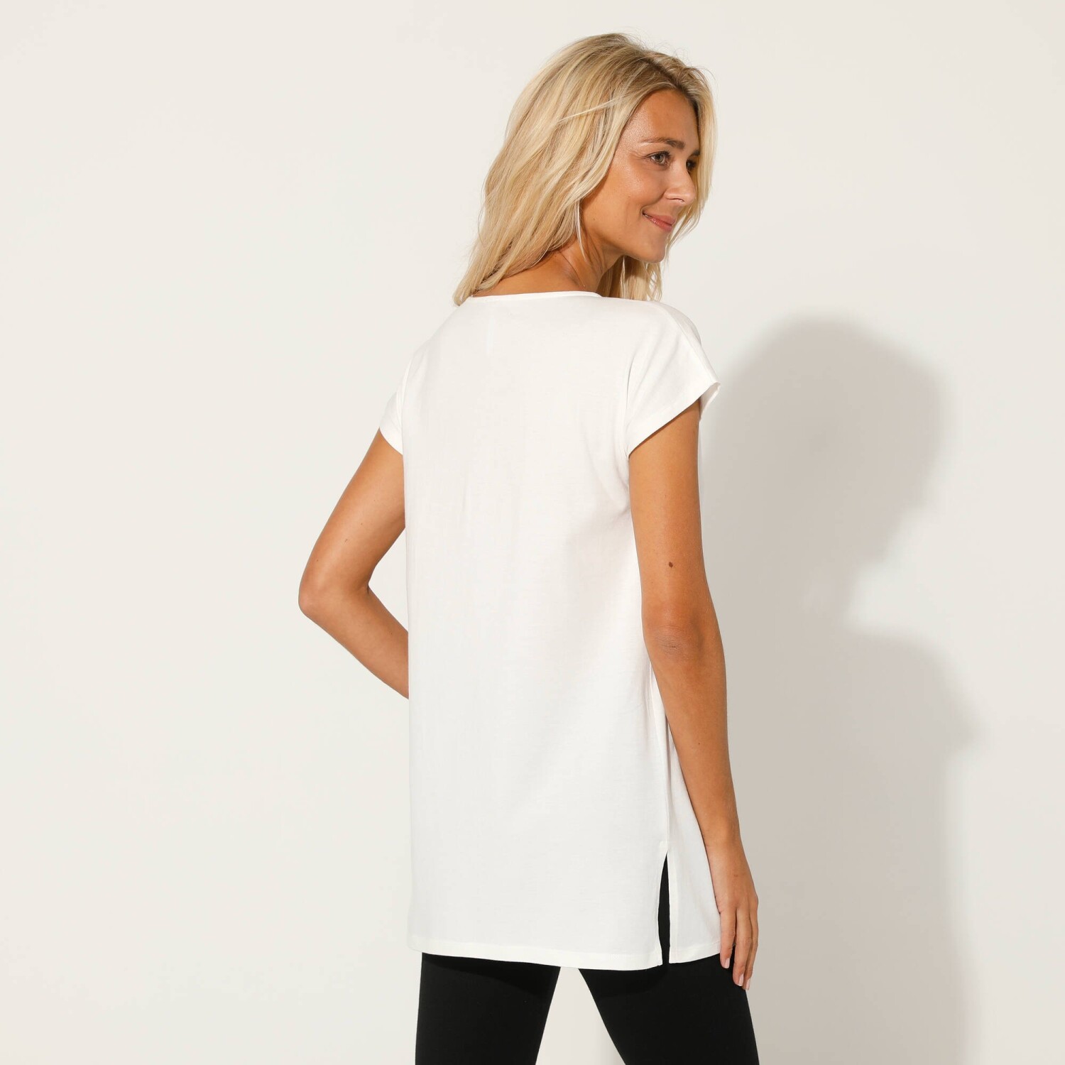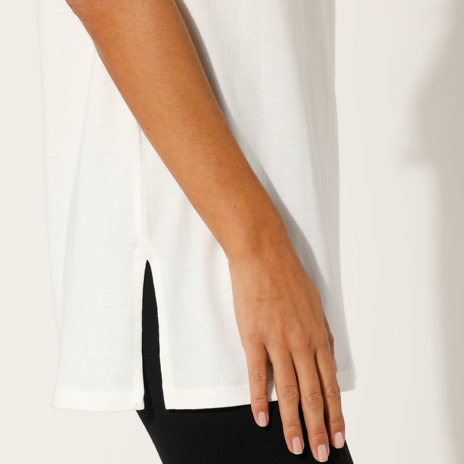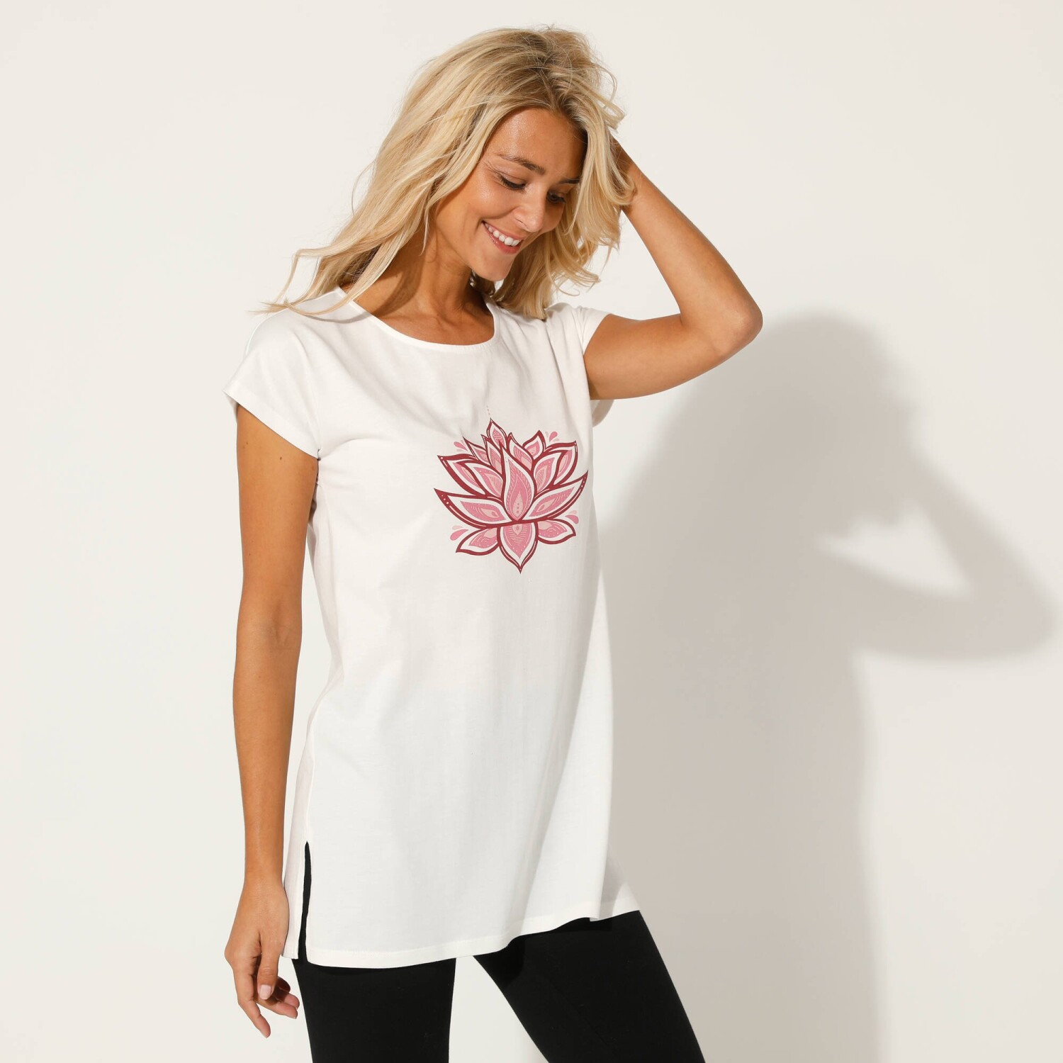 Elegancki nadruk zdobi tę modną koszulową tunikę! Kołnierzyk koszulowy. Zapięcie z przodu na złote guziki. Rozcięcia po bokach. Długie rękawy. Mankiety zapinane na guziki. Można prać w pralce.
