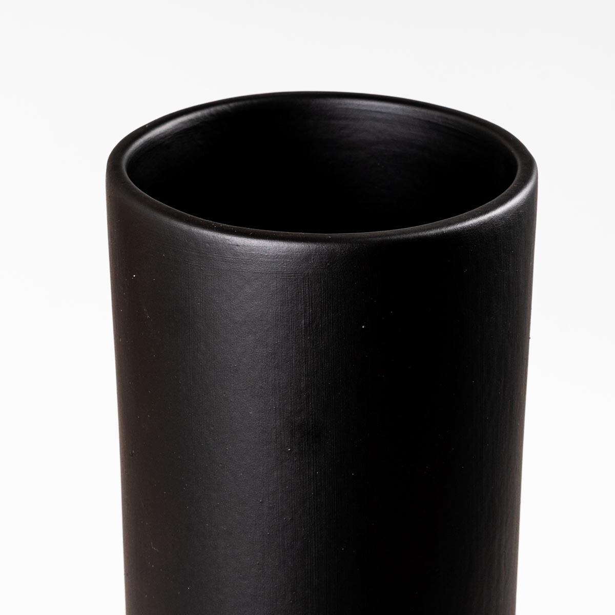 Ten stylowy wazon ceramiczny na kwiaty w matowej czerni przyciąga uwagę wyrazistą sylwetką – okrągła podstawa przechodzi w wąską szyjkę, tworząc harmoniczny kontrast kształtów. Minimalistyczny design w stonowanym wykonaniu nadaje wnętrzu nowoczesny i wyrafinowany wygląd. Doskonale prezentuje się samodzielnie, jak i z kwiatami – świeżymi, suszonymi lub dekoracyjnymi gałązkami. Materiał: ceramika. Wymiary: wysokość 42 cm, średnica 18,5 cm.