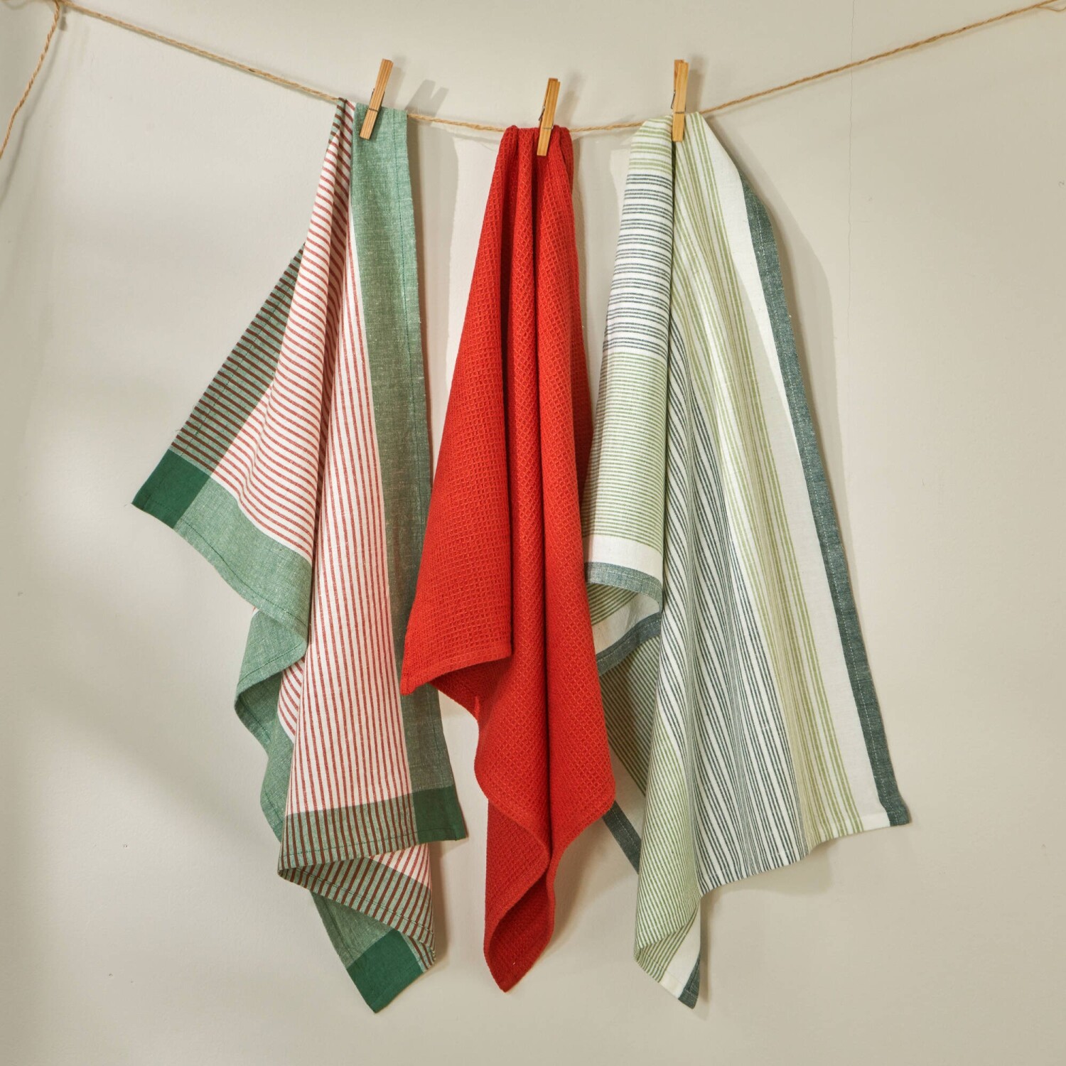 Wybierz zestaw 3 lub 6 ściereczek w wersji jednolitej lub w paski. Wykonane z barwionych włókien zapewniających trwałość kolorów. Mocne, miękkie i chłonne. Wykończone obszyciem. Pętla do zawieszenia. Pasujące kolory: 2 w paski i 1 w jednolitym kolorze plastra miodu. Standard 100 według Oeko-Tex (nr CQ 1216/1 IFTH). Ten znak identyfikuje produkty tekstylne, które zostały poddane testom laboratoryjnym pod kątem szerokiej gamy szkodliwych substancji, a produkt jest bezpieczny poza obowiązującymi normami.