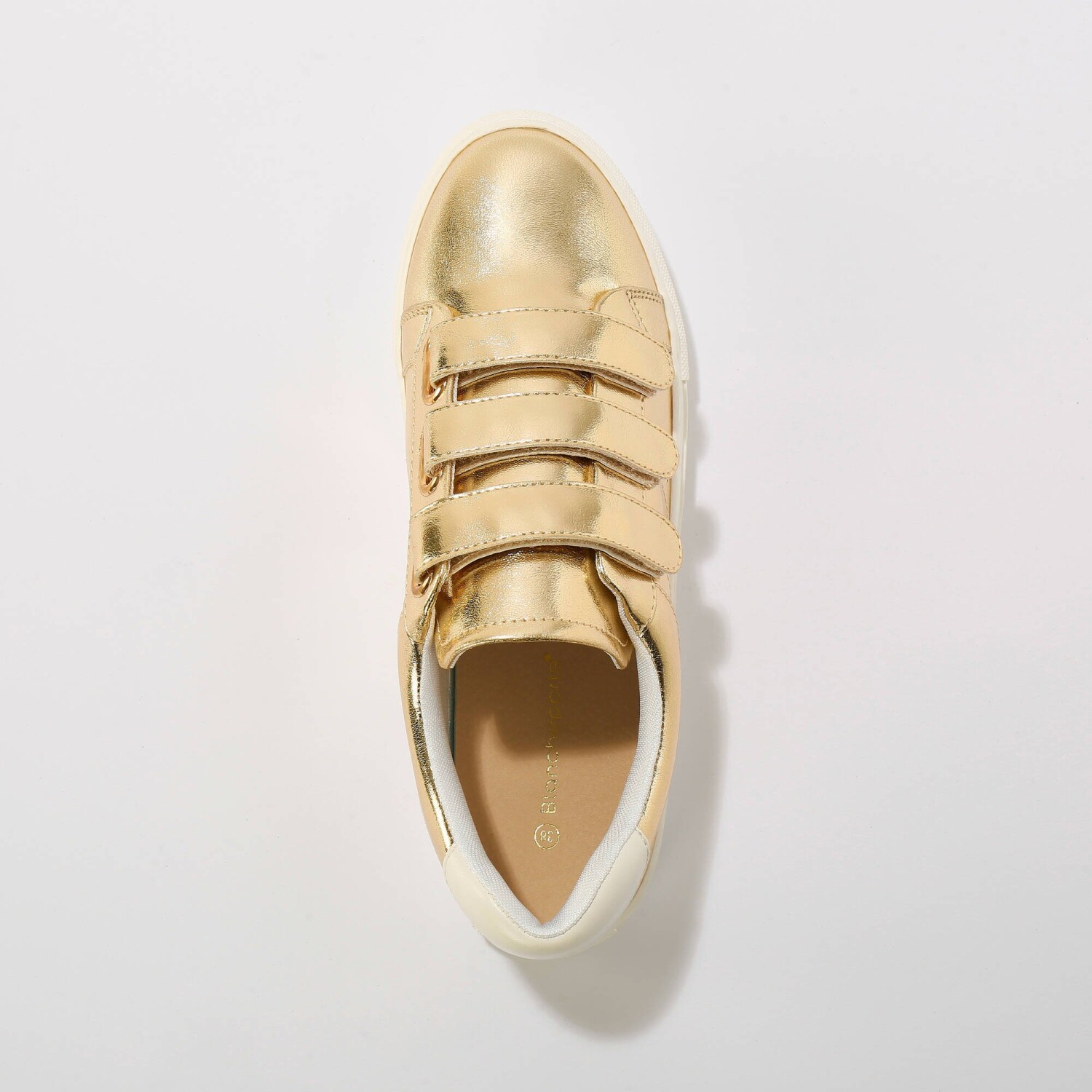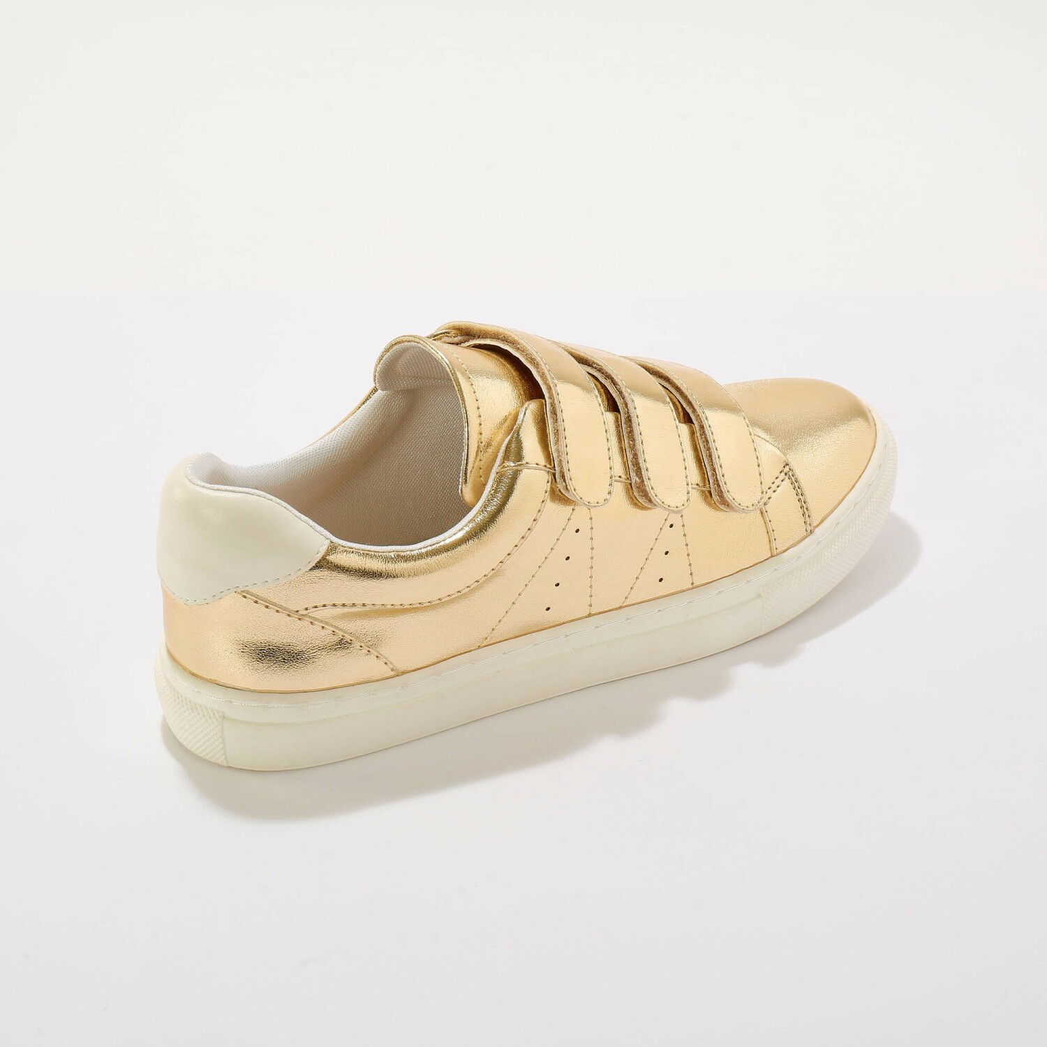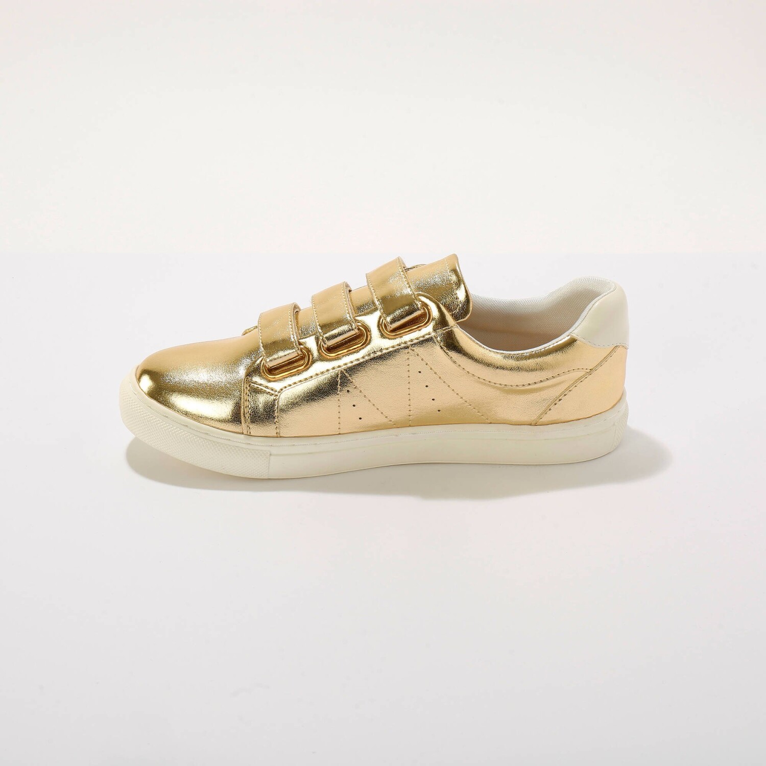Modne trampki ze skóry imitującej skórę krokodyla, zapinane na rzep. 3 paski z rzepem ułatwiają zakładanie. Miękka wyściółka wokół kostki. Solidny obcas. Płaska, antypoślizgowa podeszwa. Zabezpiecz buty impregnatem chroniącym przed plamami i wilgocią.